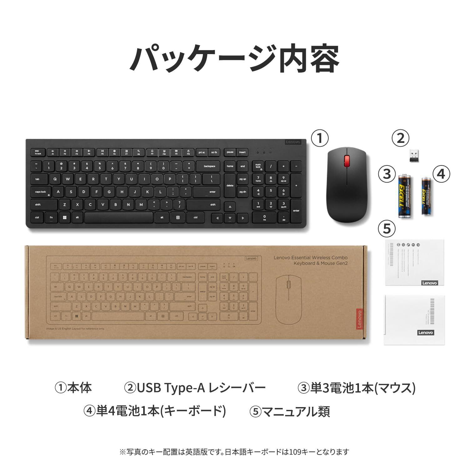 【2022最新】Lenovo Lenovo エッセンシャル ワイヤレス キーボード&マウス 2 - 日本語 ワイヤレス接続 電池式 静音 4X31N50729