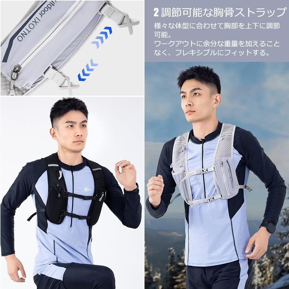 ランニング リュック マラソン 大容量5L トレイルランニング 超軽量 180g ザック ランニング リュック 揺れない 自転車レース マラソン ンパックバッグ ランニングベスト 光反射 通気 トレラン リュック と 1.5Lハイドレーショ袋付/500ml水筒 男女/子供兼用