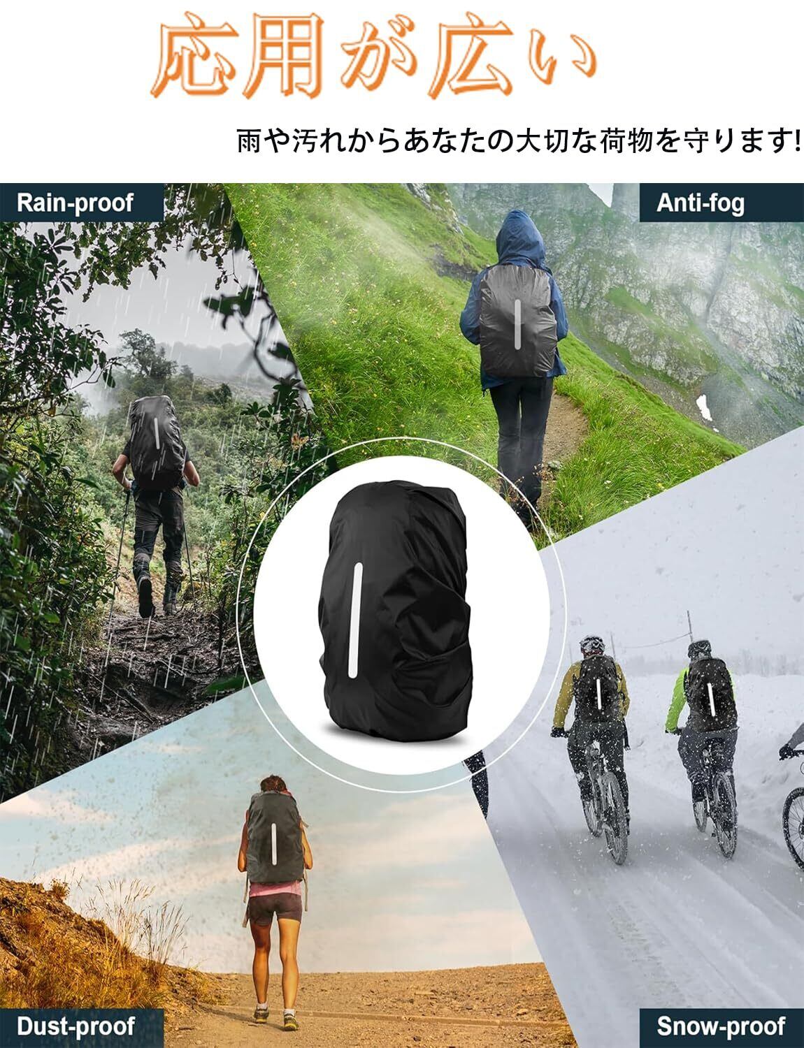 【商品内容】リュックカバー*1, 収納袋付き、簡単でカバーが収納できます。通勤、通学、旅行、アウトドアで携帯便利です。サイズ:S;20-30L、 M:30-40L 、L:40-50L 、XL:50-65L、XXL:65-75L。