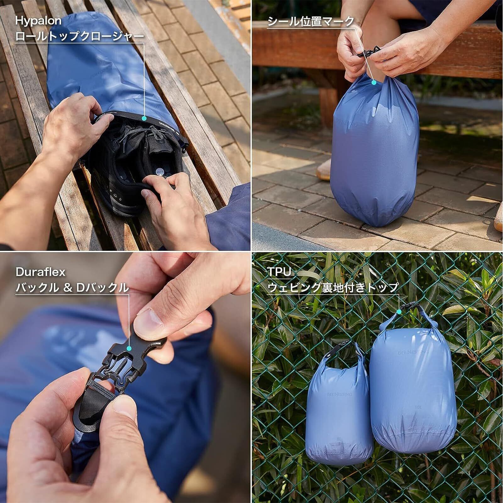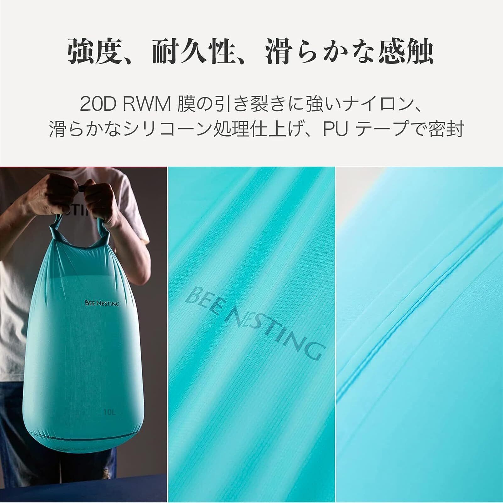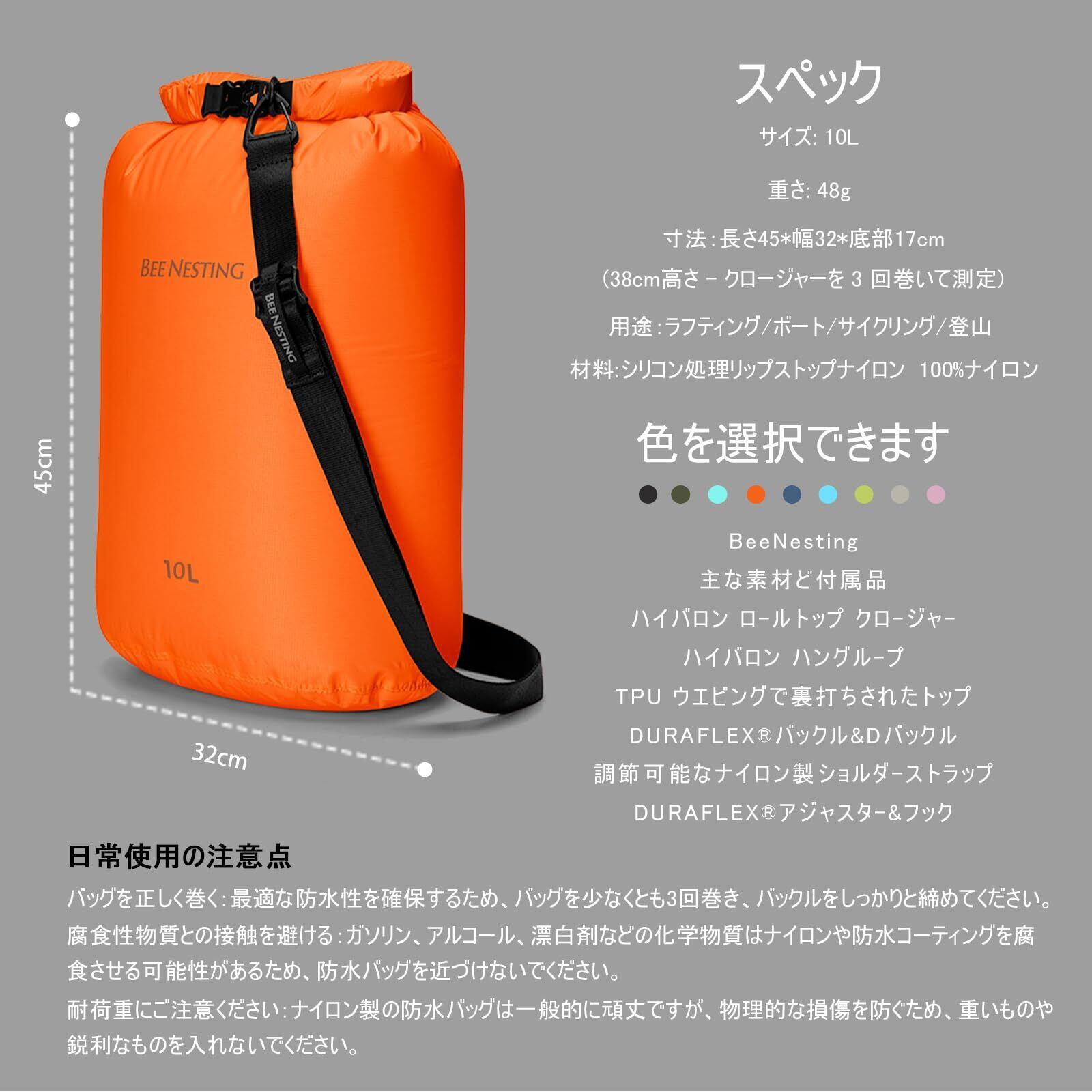 【在庫セール】Bee Nestingドライバッグ 超軽量 防水バッグ 折りたたみ スタッフバッグ 完全防水 ウォータープルーフバッグ 防災 温泉 海水浴 釣り ビーチ 水泳 登山 旅行 便利グッズ (グレー, 10L)