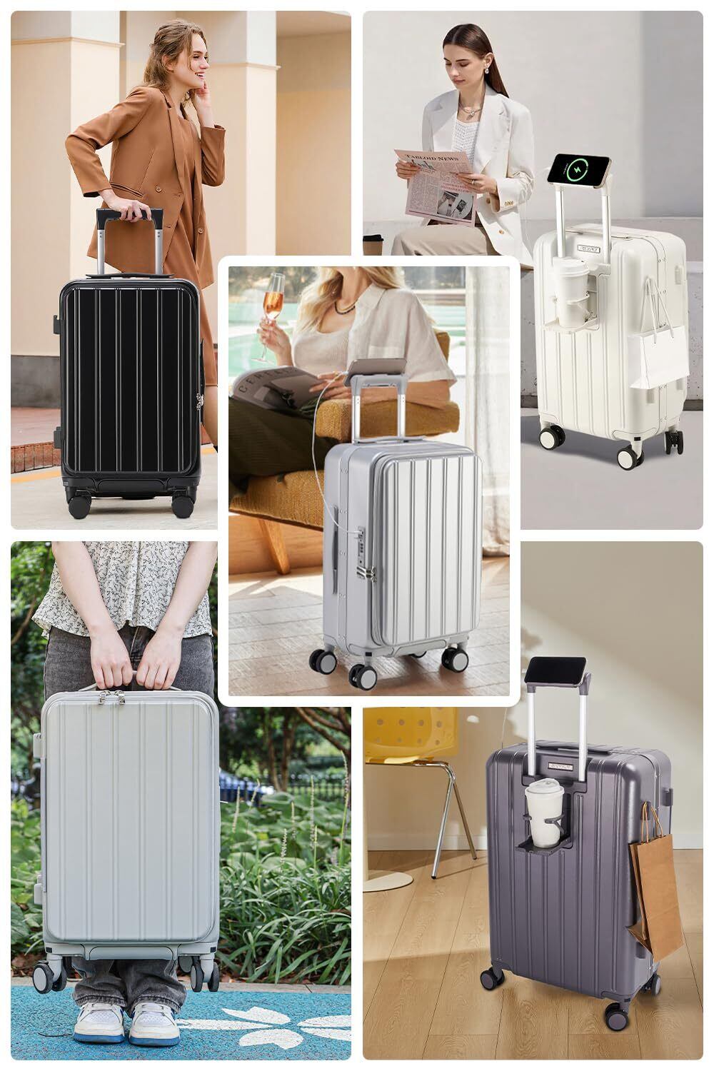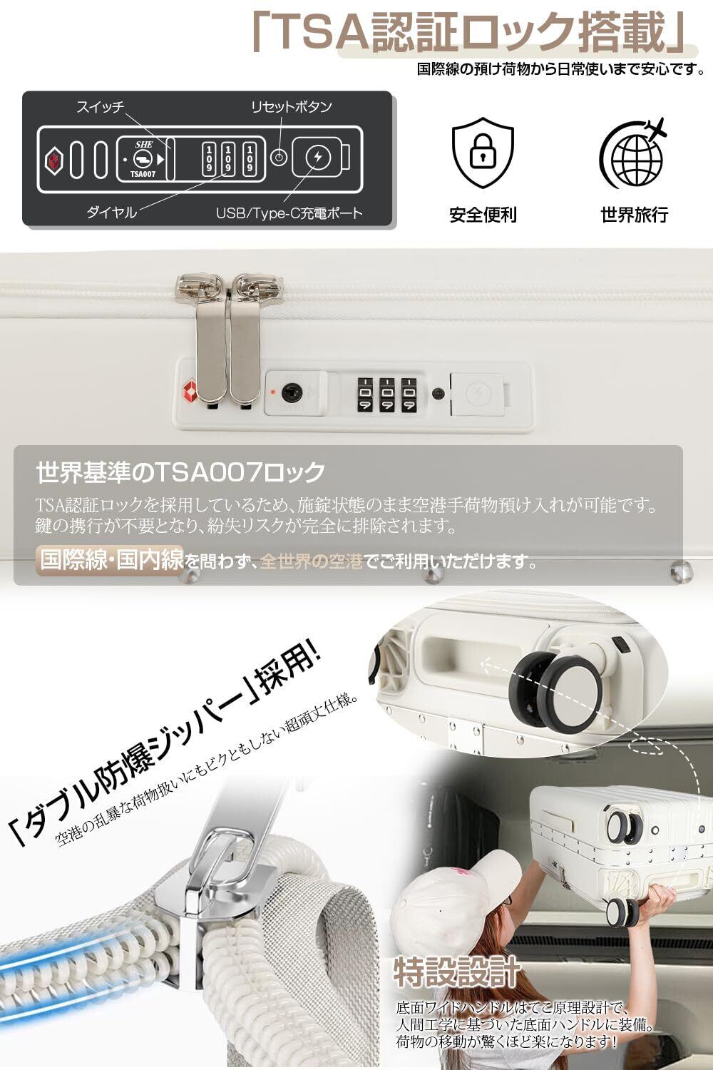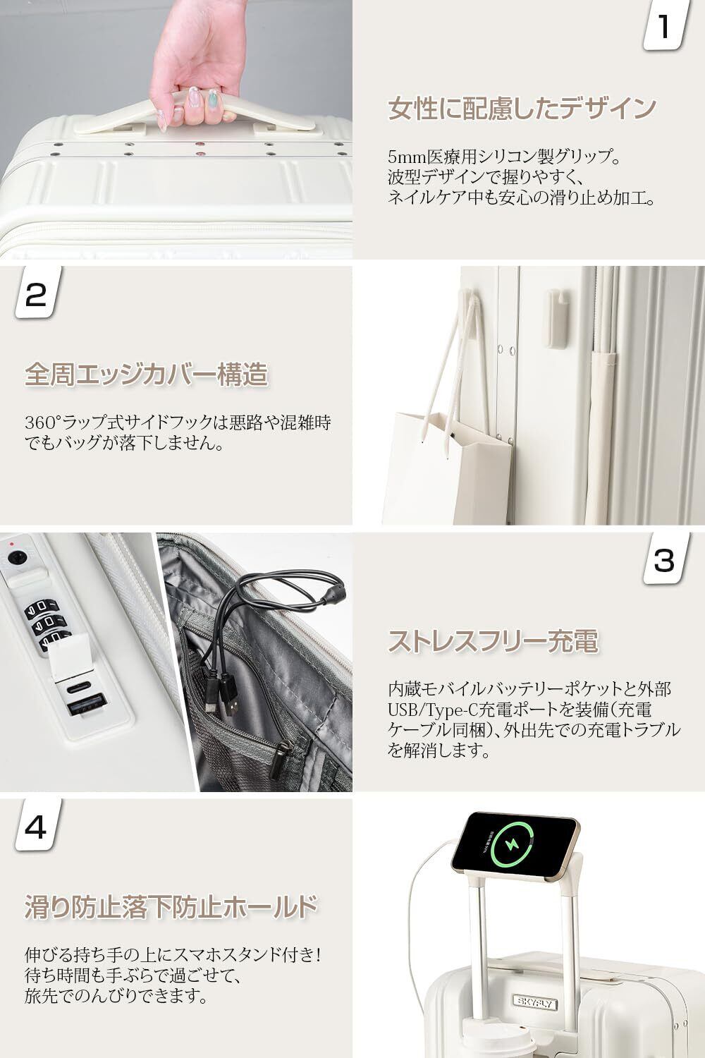 [SKYFLY] スーツケース 機内持ち込み 片開き キャリーケース 軽量 多機能 Sサイズ【キャスター 静音 360度回転 着脱可能】 キャリーバッグ 耐衝撃 アルミフレーム カップホルダー付き USBポート TSAロック ファスナータイプ 海外 旅行 ビジネス 修学 泊まる 入院 ( 1-3泊 40L 機内持ち込み ホワイト )