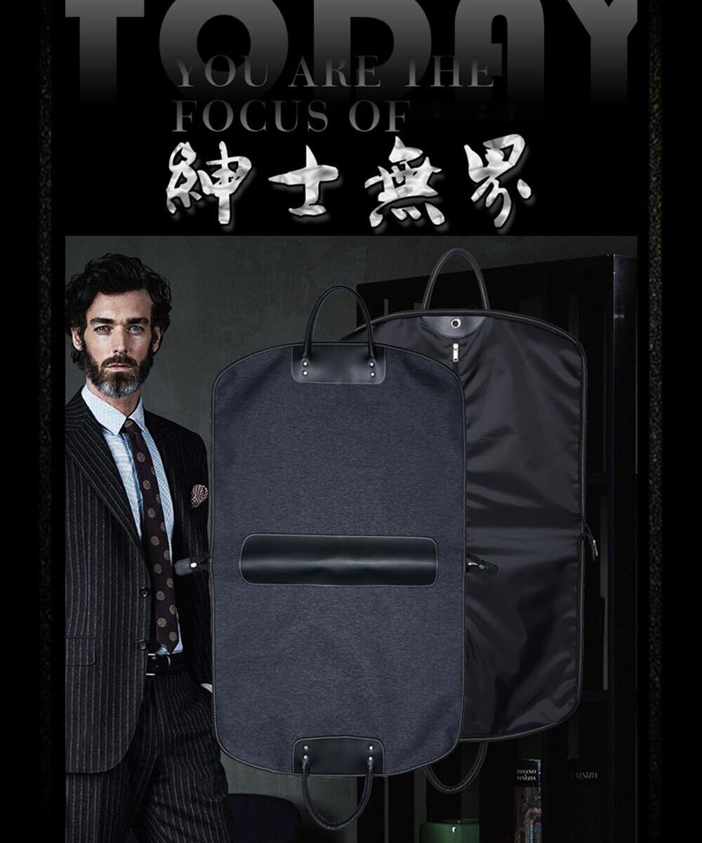 【シワ防止】ビジネスマンであればキレイなスーツを着るのが常識。只、簡易なガーメントバッグだと持ち運びの際にシワが付いてしまうことも。この悩みを解決するのが、このガーメントバッグ。持ち運ぶ際にスーツがズレてシワにならないよう考えられた設計。