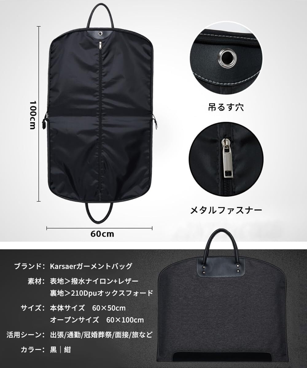 【新着商品】[Karsaer] ガーメントバッグ メンズ ガーメントケース おしゃれ テーラーバッグ スーツバッグ 折りたたみ 小物収納 便利 出張 ビジネス 制服 衣装 収納 冠婚葬祭 礼服G0001