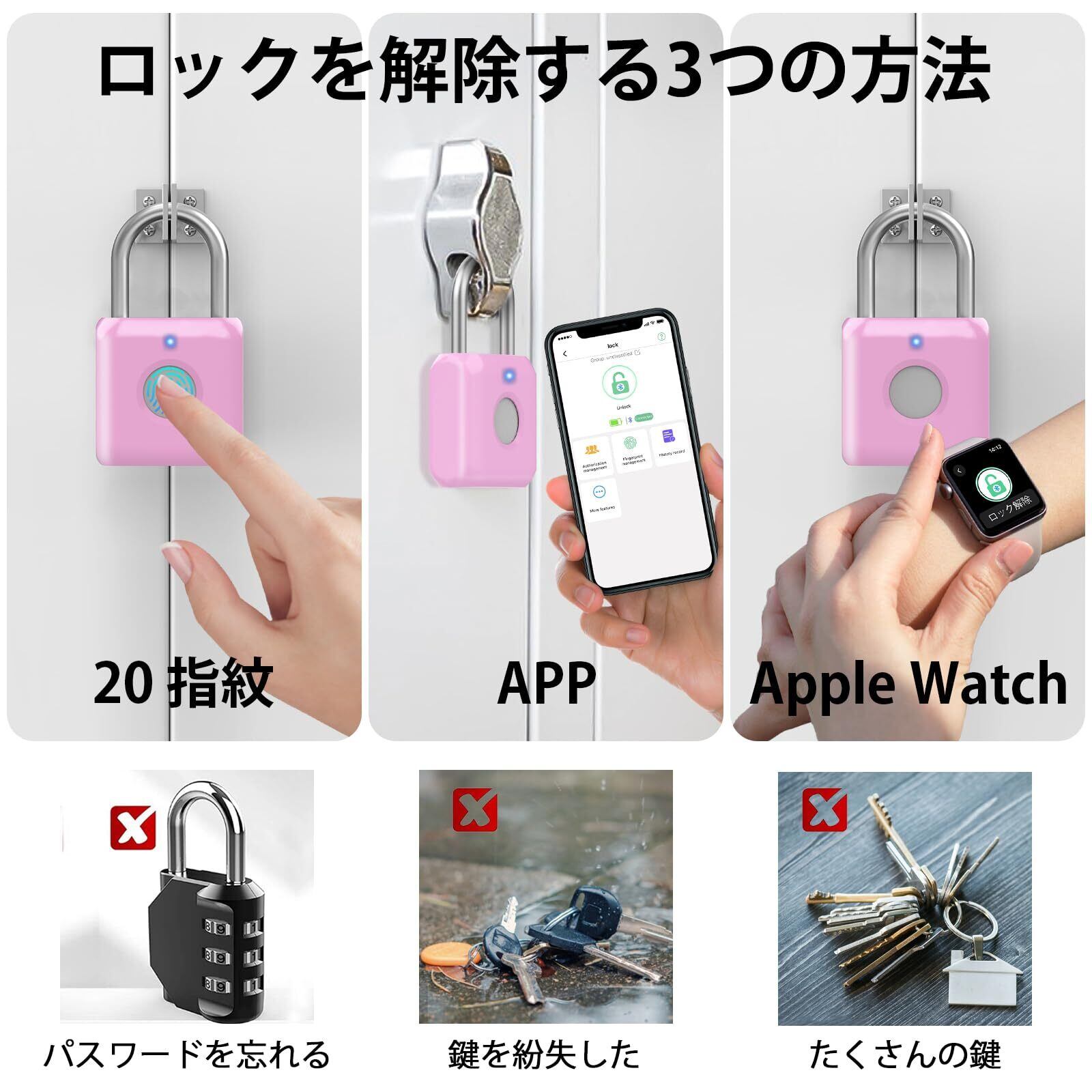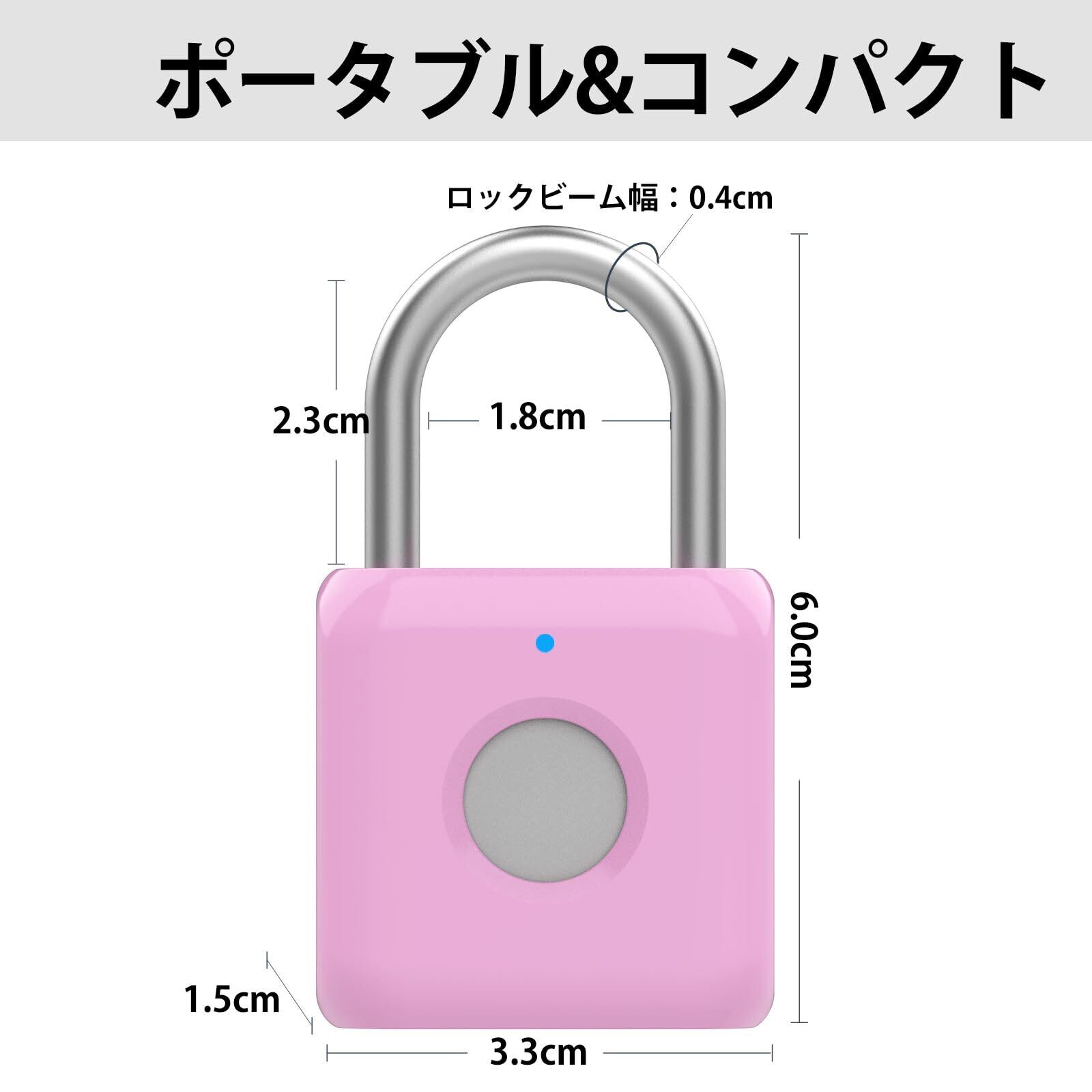 南京錠 eLinkSmart 指紋 ロック スマートロック USB 充電式 南京錠 可愛い 20枚指紋とAPP 登録 Smart Pad Lock ロッカー 学校 荷物スーツケース 屋外 ロッカー ポス オフィス ピンク