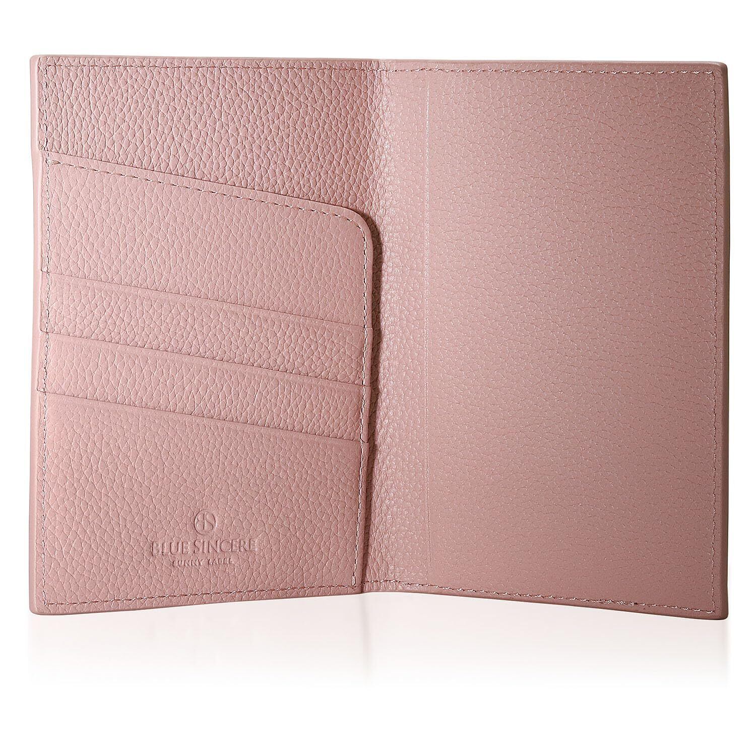 [BLUE SINCERE] パスポートケース 本革 スキミング防止 パスポートカバー カードポケット フリーポケット 海外旅行 海外出張 ハンドメイド ギフトボックス付き / PP1 (スワニーピンク)