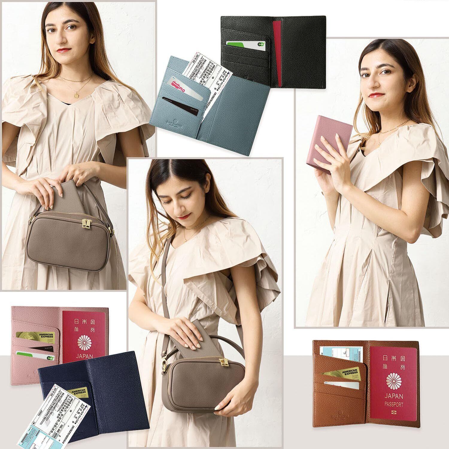 【2022最新】[BLUE SINCERE] パスポートケース 本革 スキミング防止 パスポートカバー カードポケット フリーポケット 海外旅行 海外出張 ハンドメイド ギフトボックス付き / PP1 (スワニーピンク)