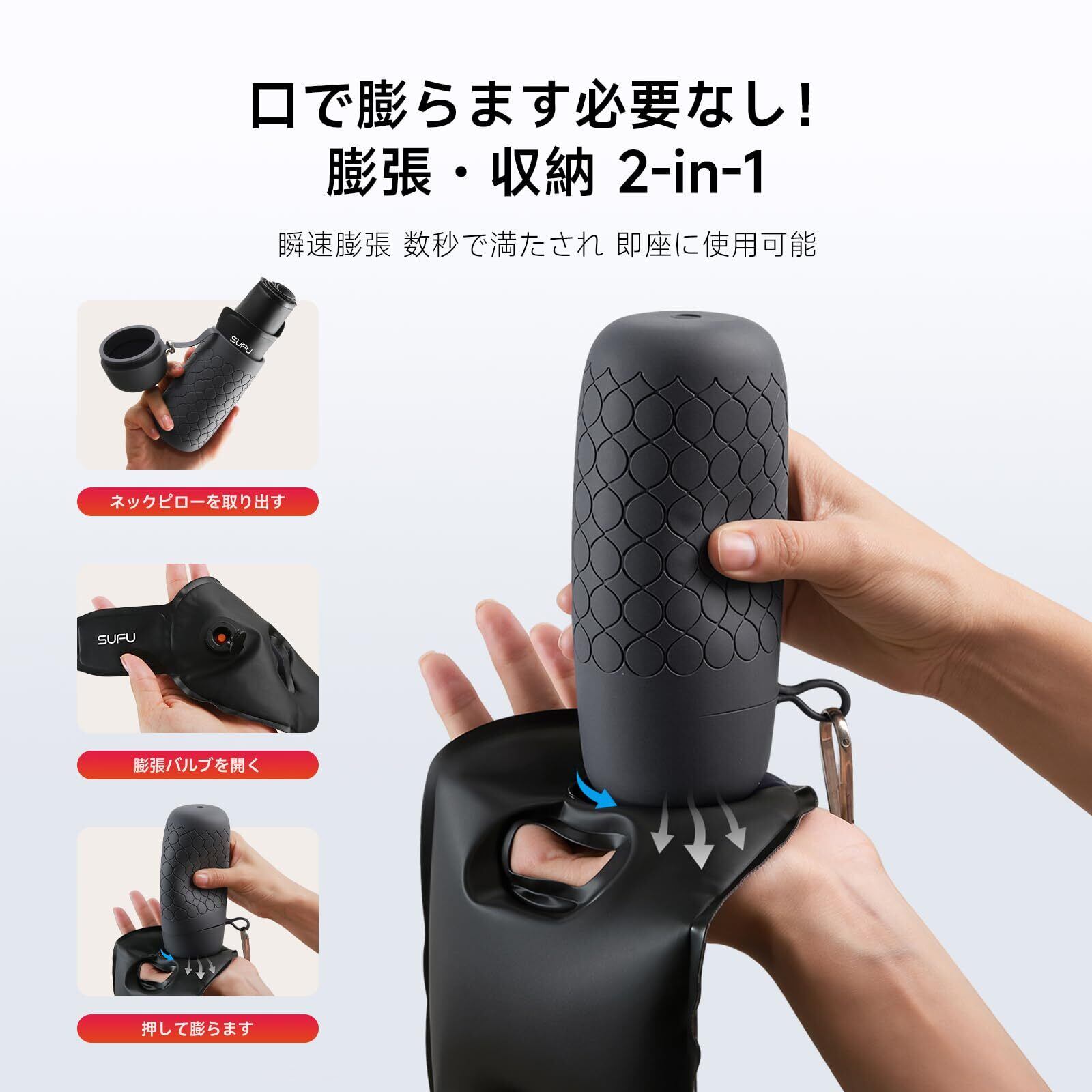 充気・収納 2-in-1:付属の収納バッグに排気後直接収納でき、余分なスペースを取らず、出張や旅行の持ち運びがより安心です。