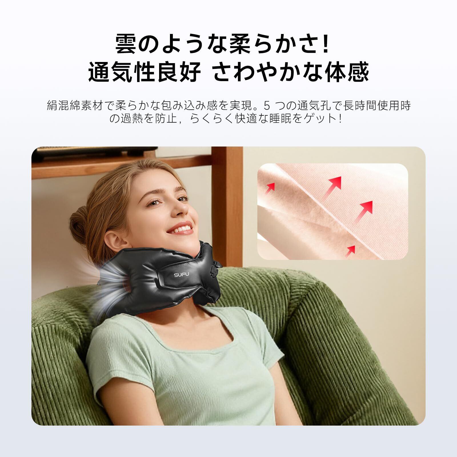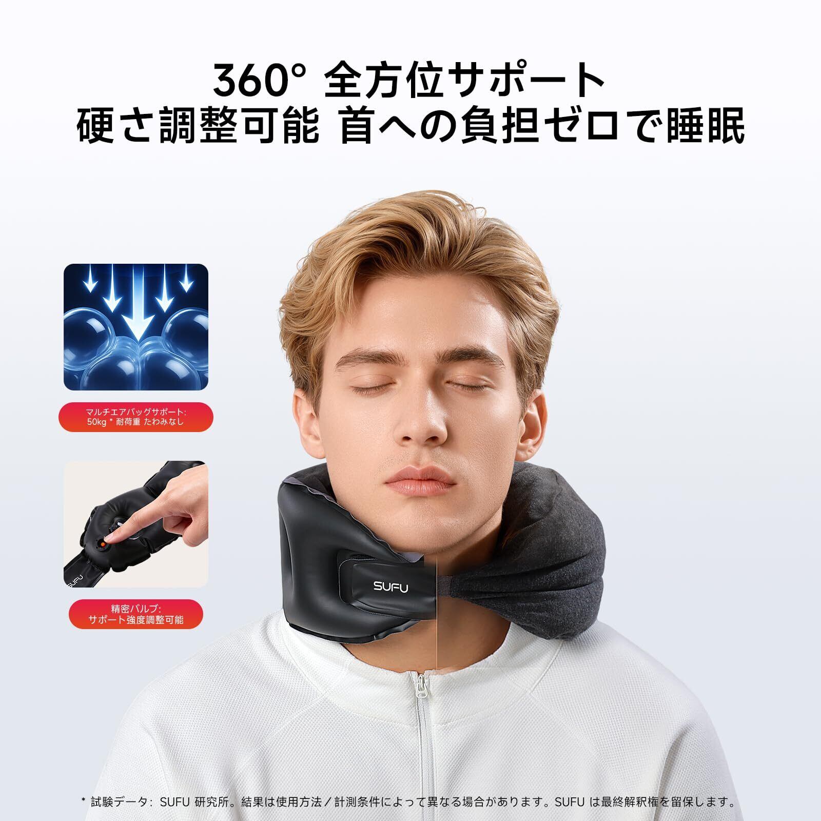 強力サポートで陥没しない:エアサポート技術を搭載、50kg の重量を安定して支え、サポート力はメモリーフォーム/発泡粒製首枕を上回ります。
