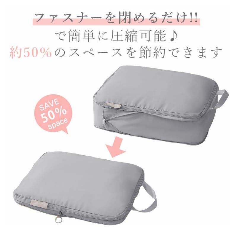 【最大50%スペース節約】 かさばる衣類があっという間にスッキリ!チャックを閉めるだけで約50%圧縮できるバッグです。見た目は小 さい圧縮バッグですが、実際は多くの衣類が入ります。旅行、出張やホテル泊などに最適な収納バッグです。