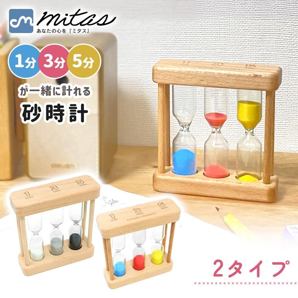 mitas 木製 砂時計 3連タイプ(1分・3分・5分)カラフル インテリア タイマー おしゃれ 学習・調理・ストレッチ用 TN-HGLS-BW