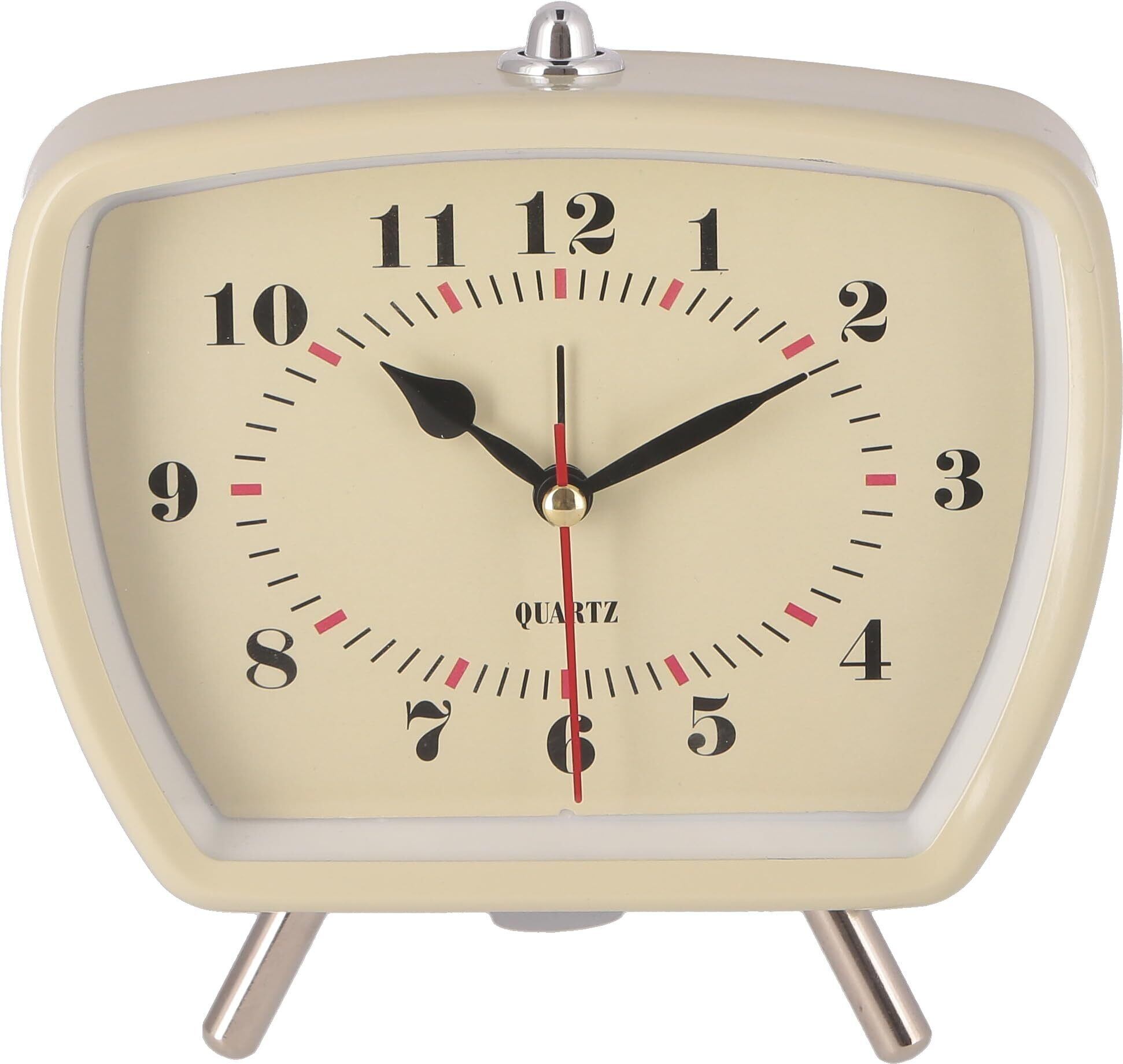 不二貿易 置き時計 幅14.6×奥行6.6×高さ14.1cm ホワイト クロック アラーム機能 静音 レトロ 37714
