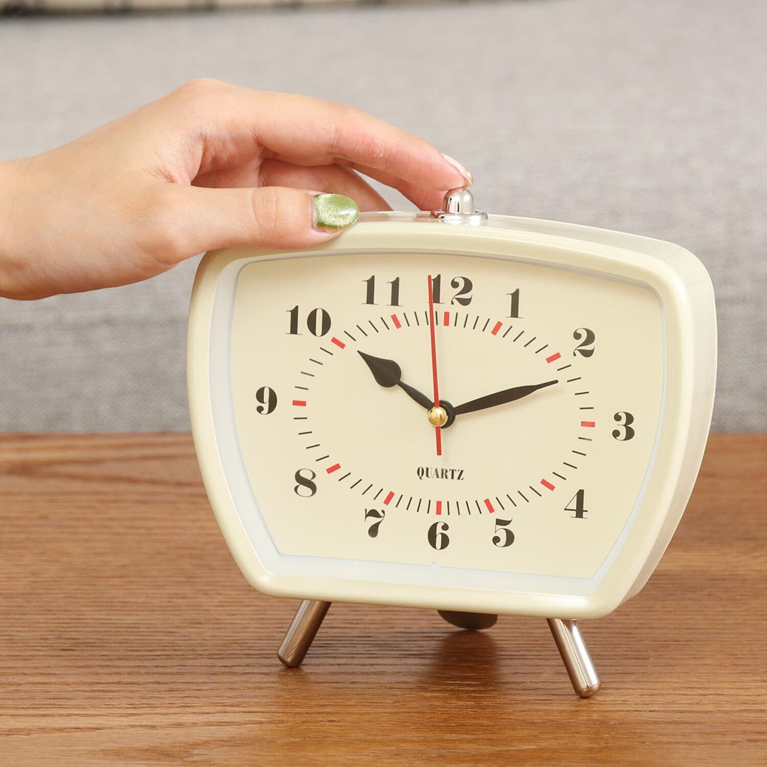 まるで昔のテレビのようなフォルムがかわいいレトロ風な置き時計です。