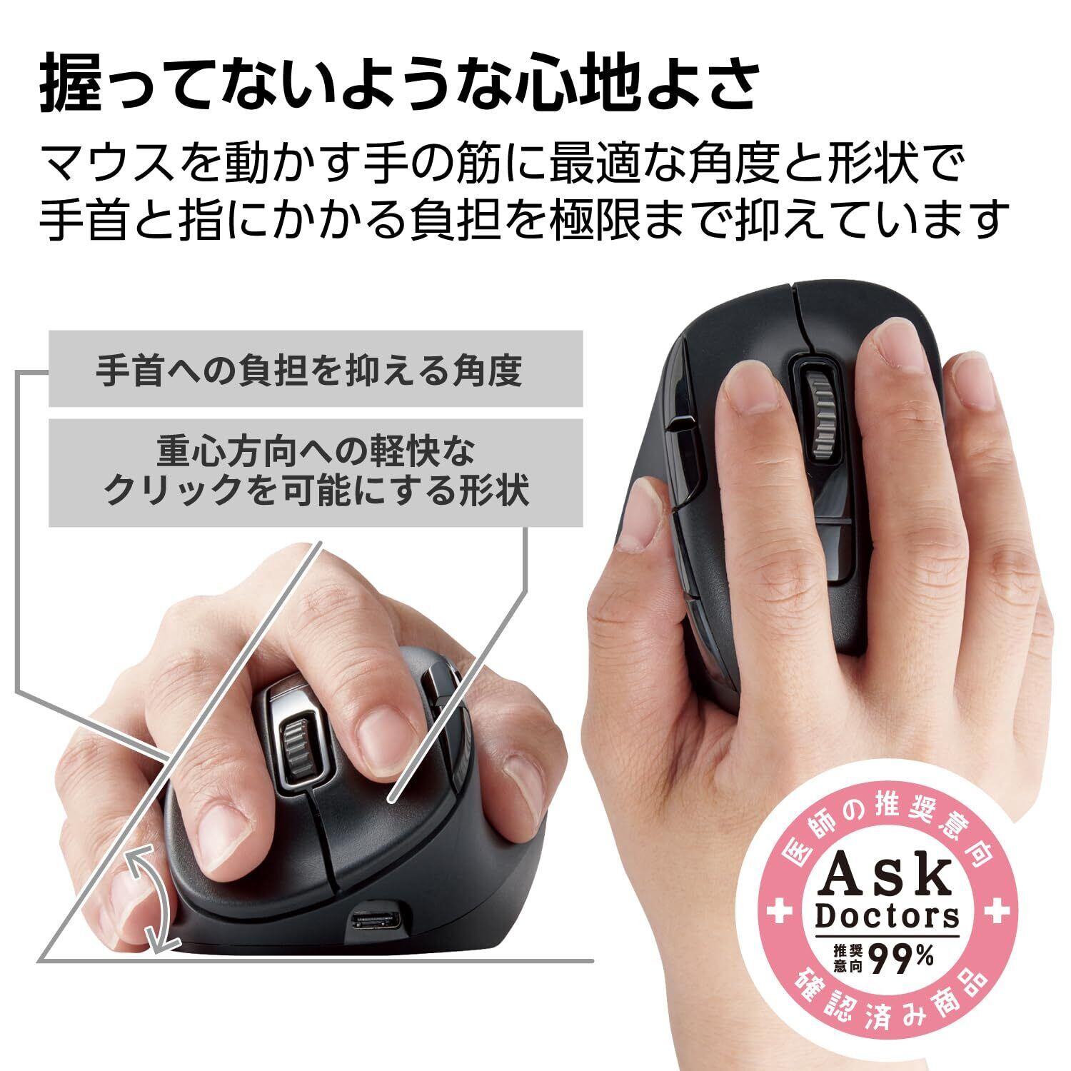 エレコム ワイヤレスマウス 静音 EX-G PRO Sサイズ Bluetooth 無線2.4GHz 両対応 充電式 8ボタン 高速スクロール チルトホイール 抗菌 ブラック M-XGS50MBSKBK