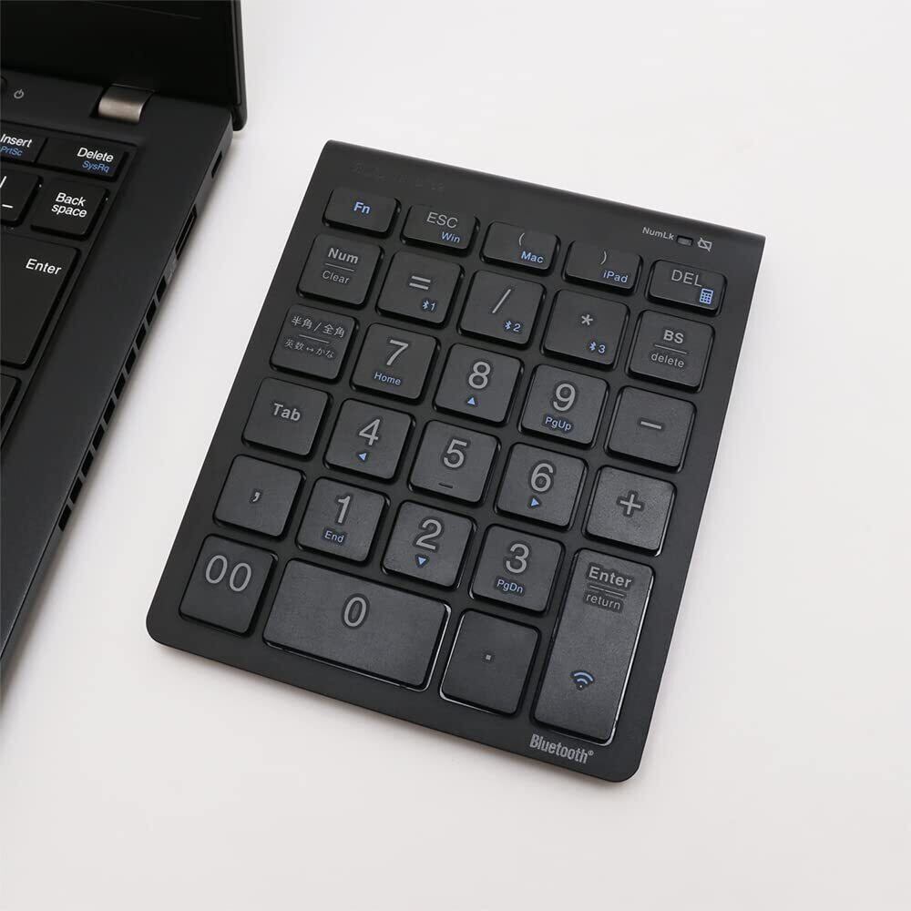【特価商品】ミヨシ MCO テンキー ワイヤレス Bluetooth接続 5列 27キー Windows Mac iPadOS対応 3台まで接続できる マルチペアリング機能搭載 関数入力に便利な「=」「(」「)」「,」「半角/全角キー」 ノートパソコンと同じ浅く軽いタッチで入力 軽量 薄型設計 ブラック ZTENBT02/BK