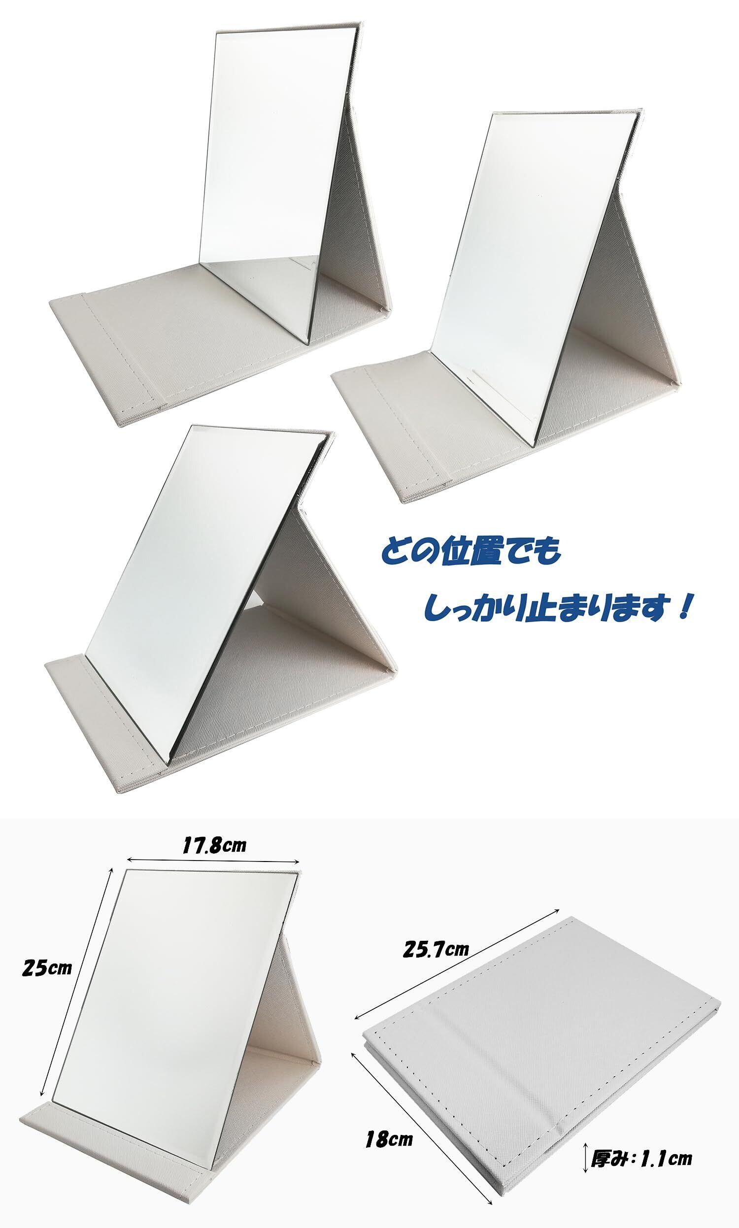 【人気商品】富士スカイ 鏡 卓上 手鏡 折りたたみ カバー材質に自信アリ! Lサイズ(25.7×18.0cm) ホワイト