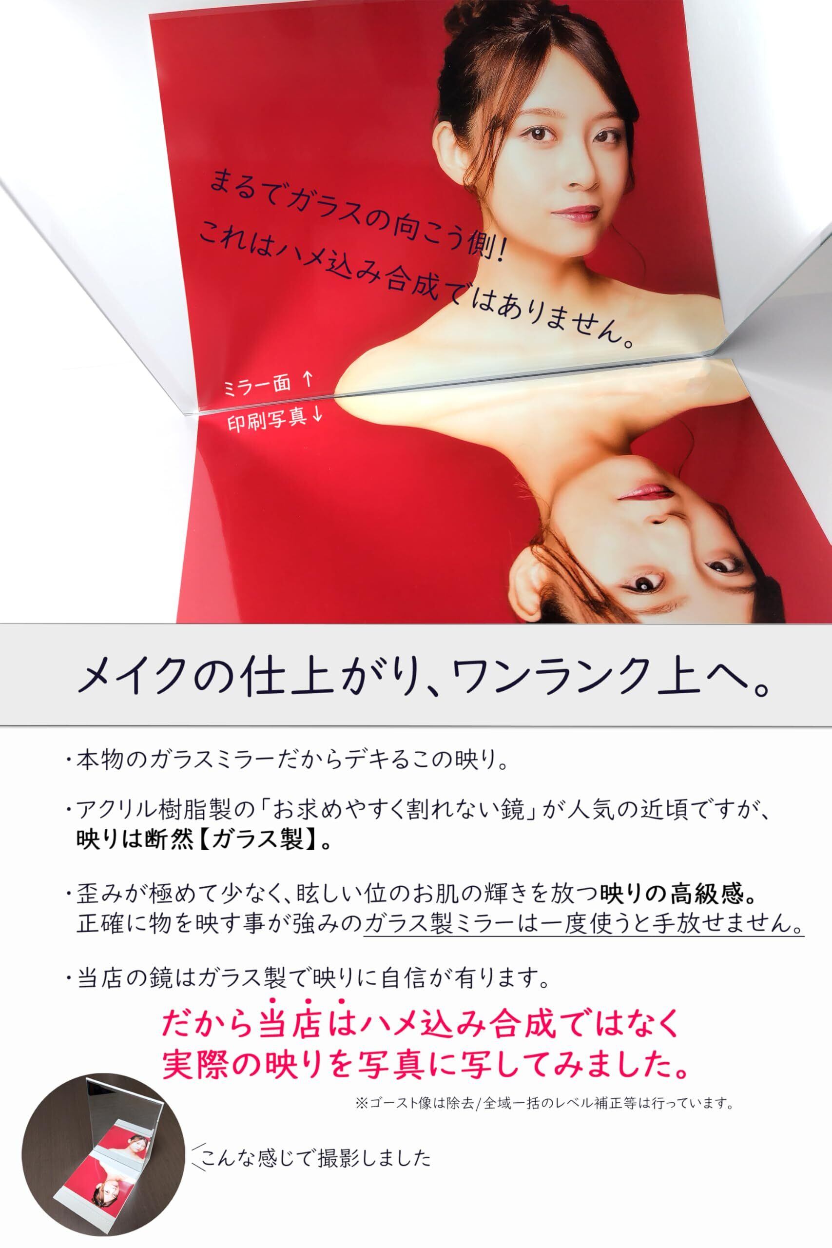 【映りに自信あり!】こちらのミラーは【ガラス製】でございます。ミラーにはガラス製ミラー、ステンレス製ミラー、プラスチック製ミラー、ビニール製ミラーなどがありますが、「ガラス製ミラー」は【もっとも正確に、美しく物を映す事に長けた素材です。】