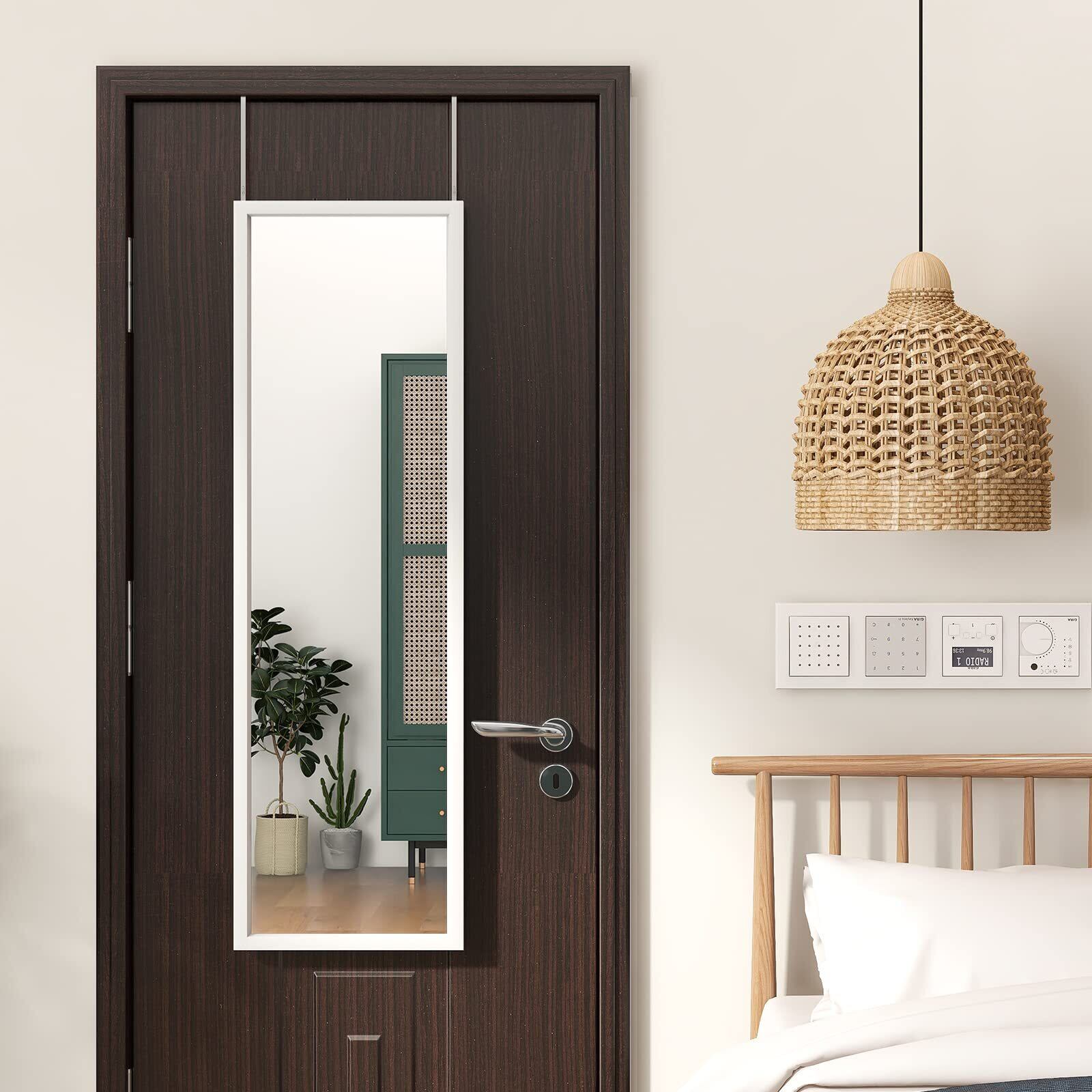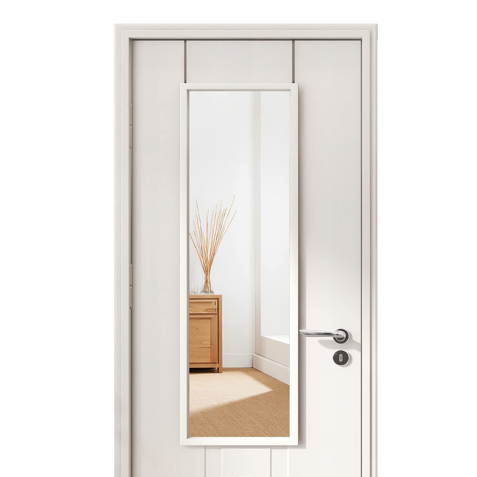 ミルオ君の鏡工房 ドア掛けミラー 全身鏡 全身ミラー 姿見 高さ調節式 壁掛け鏡 工具不要 飛散防止 HD鏡面 118x30cm ホワイト