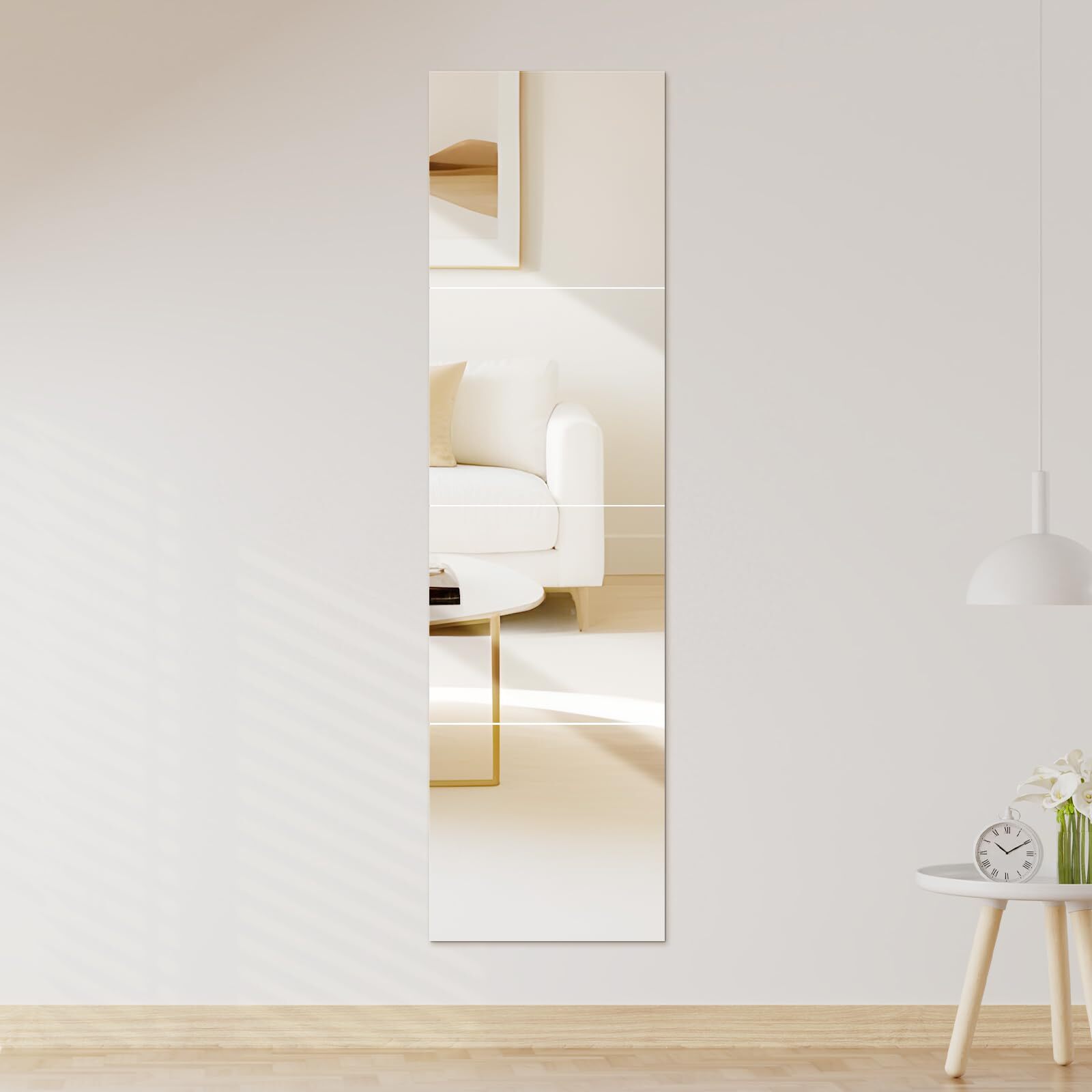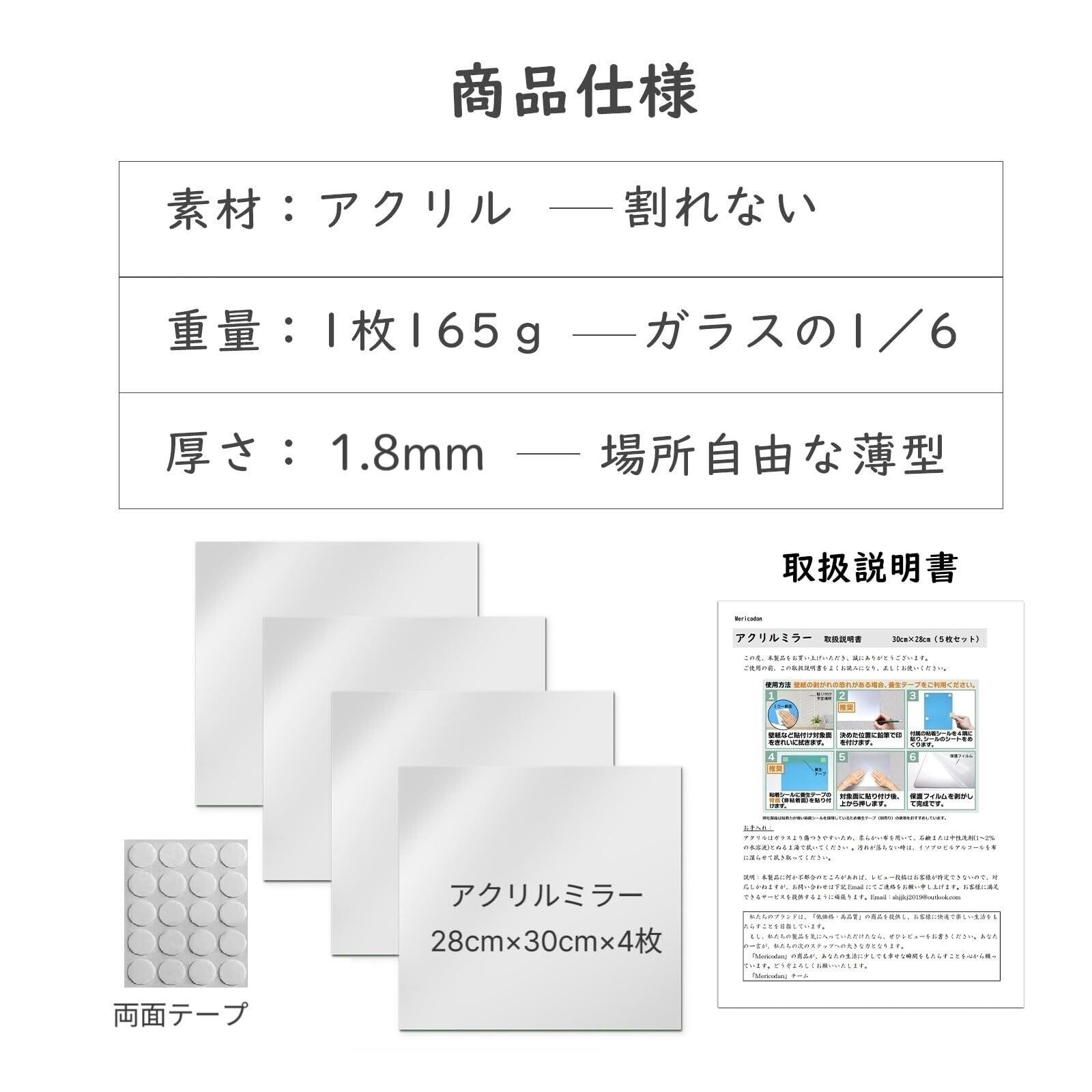 【4枚セット】全身鏡 高さ120cm×幅28cm 壁掛け 貼る鏡 割れない鏡 軽量 姿見鏡 穴あけ不要 アクリルミラー 浴室 風呂 自由に組み合わせ可能 (30cm*28cm*4枚)