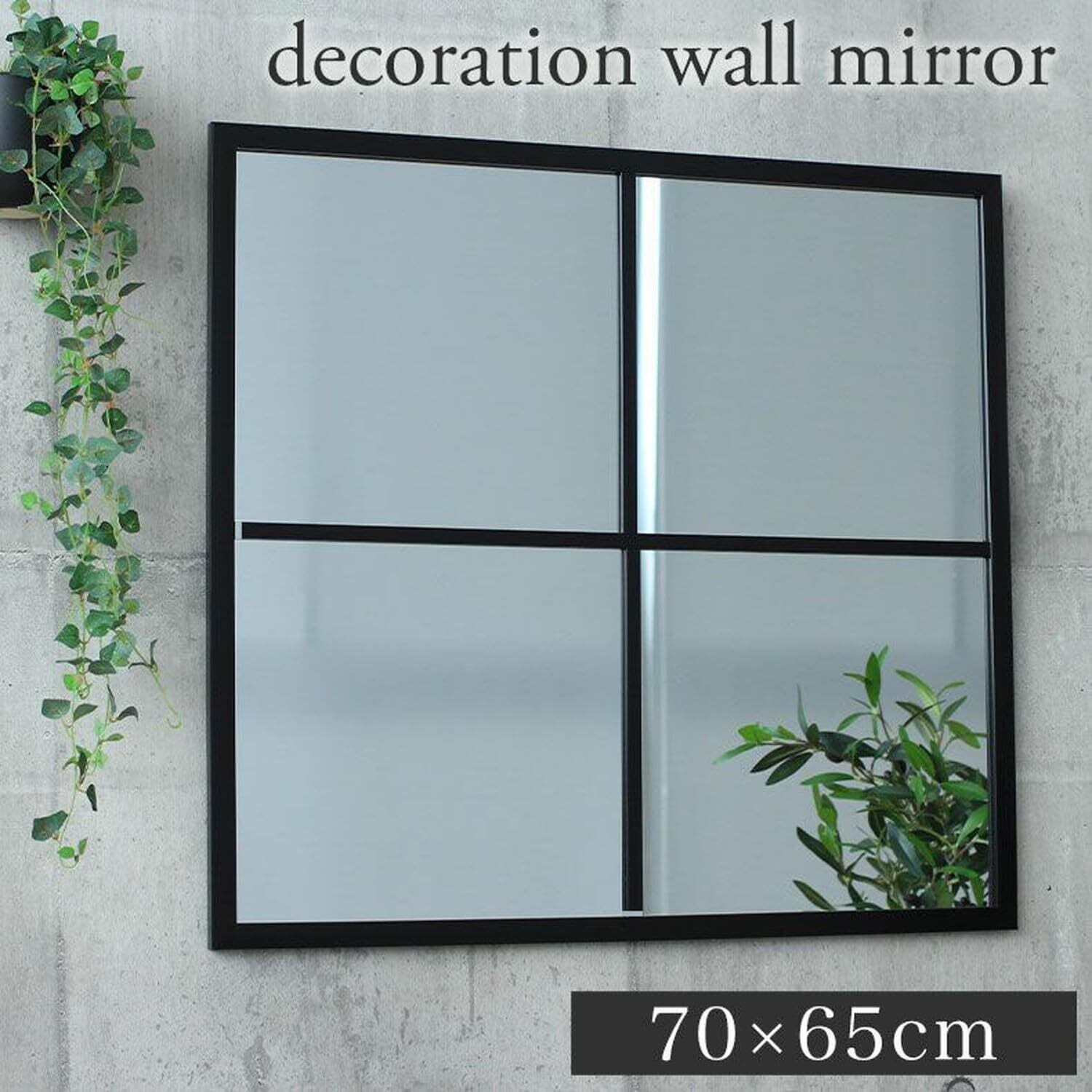 ウォールミラー 70 x 65 壁掛け 鏡 スクエア 窓風 ミラー 飛散防止ガラス仕様 [モダンでおしゃれな] マス目 フレーム テュリス ブラック 黒 【 マナベ 】