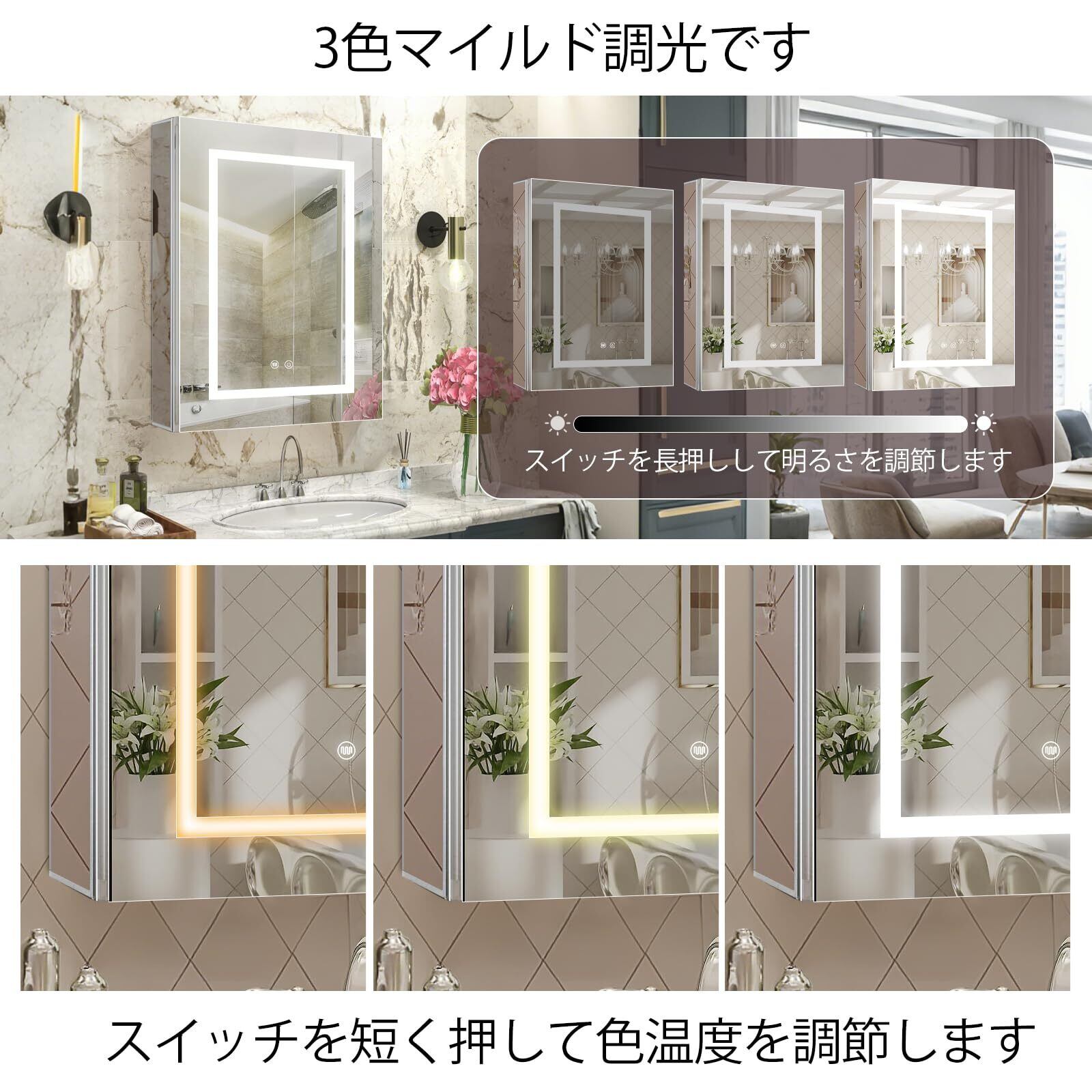 調光機能:LEDミラーキャビネットには、調光機能が備わっており、個人の好みや環境に応じて照明の明るさを調整できます。最適な照明効果を確保します。