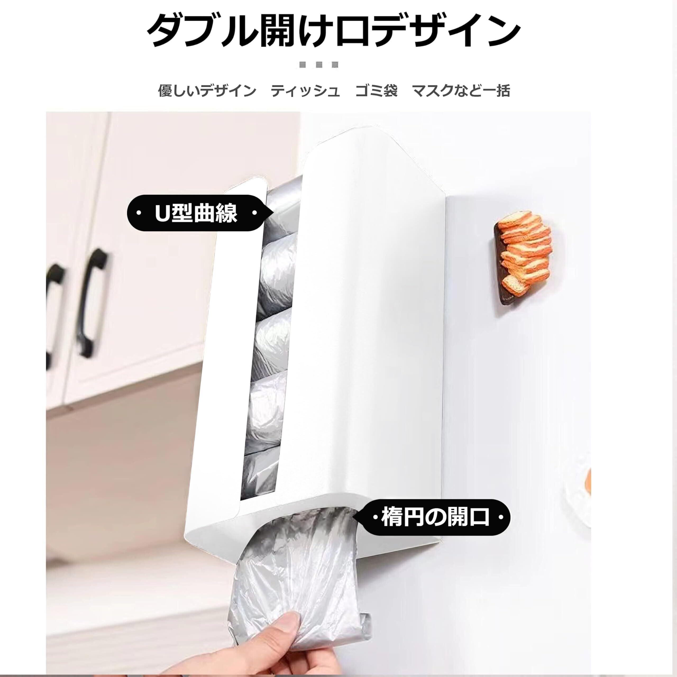 【底開きデザイン】ティッシュボックスだけでなく、様々な機能が備えている、ティッシュボックスの底に開口部のデザインがあり、ゴミ袋も簡単に取り出せます。
