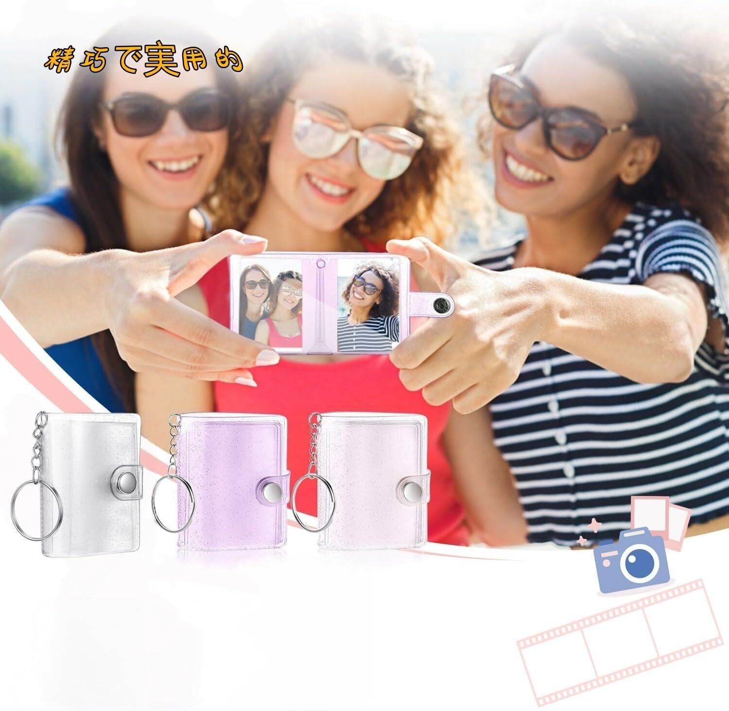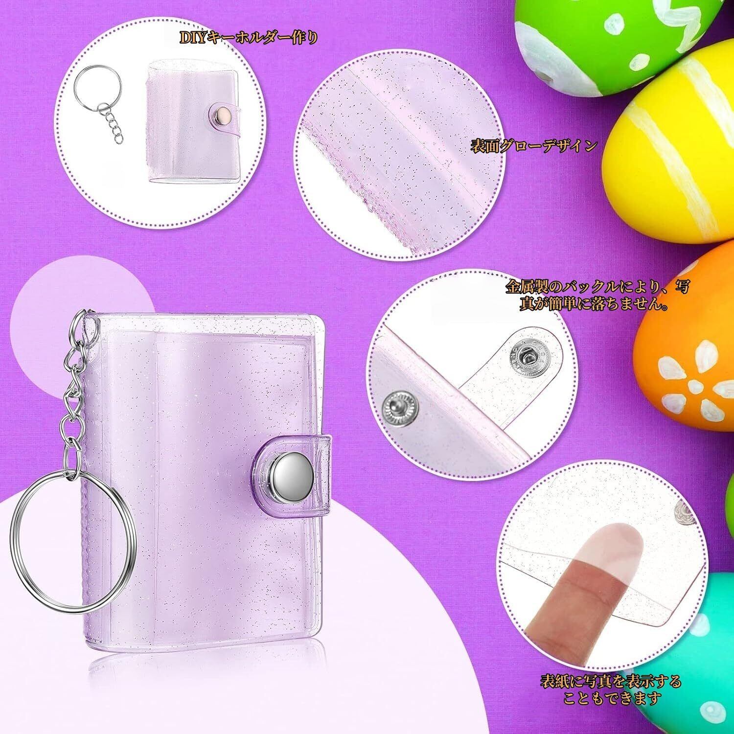 ミニフォトアルバムキーチェーン 2インチ 20枚 透明 キーホルダー付 持ち運び便利 【アップグレード版 - 3点セット】PVC 防水 バインダー 写真収納 推し活グッズ クリアポケット 恋人メモリー 思い出 応援 ペンダント ギフト