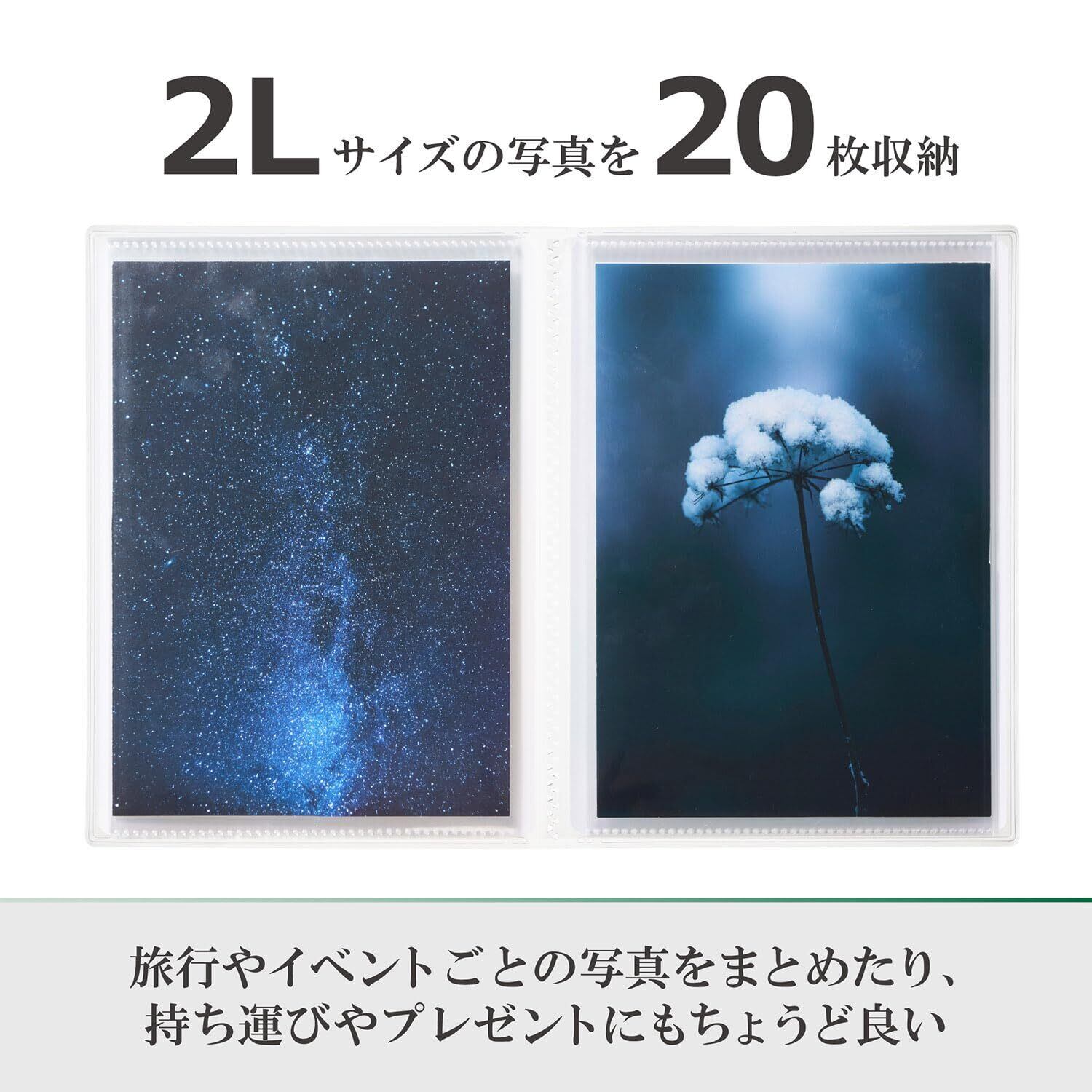 ■対応写真・プリントサイズ:2Lサイズ(W127×H178mm)、■表紙サイズ:約W145×H199×D8.5mm、■収容枚数:2Lサイズ20枚