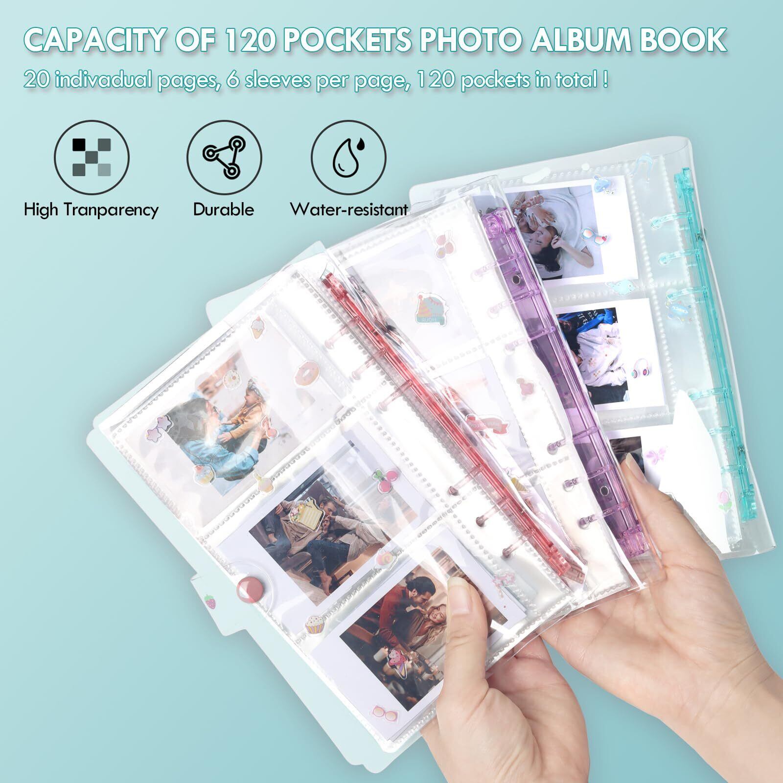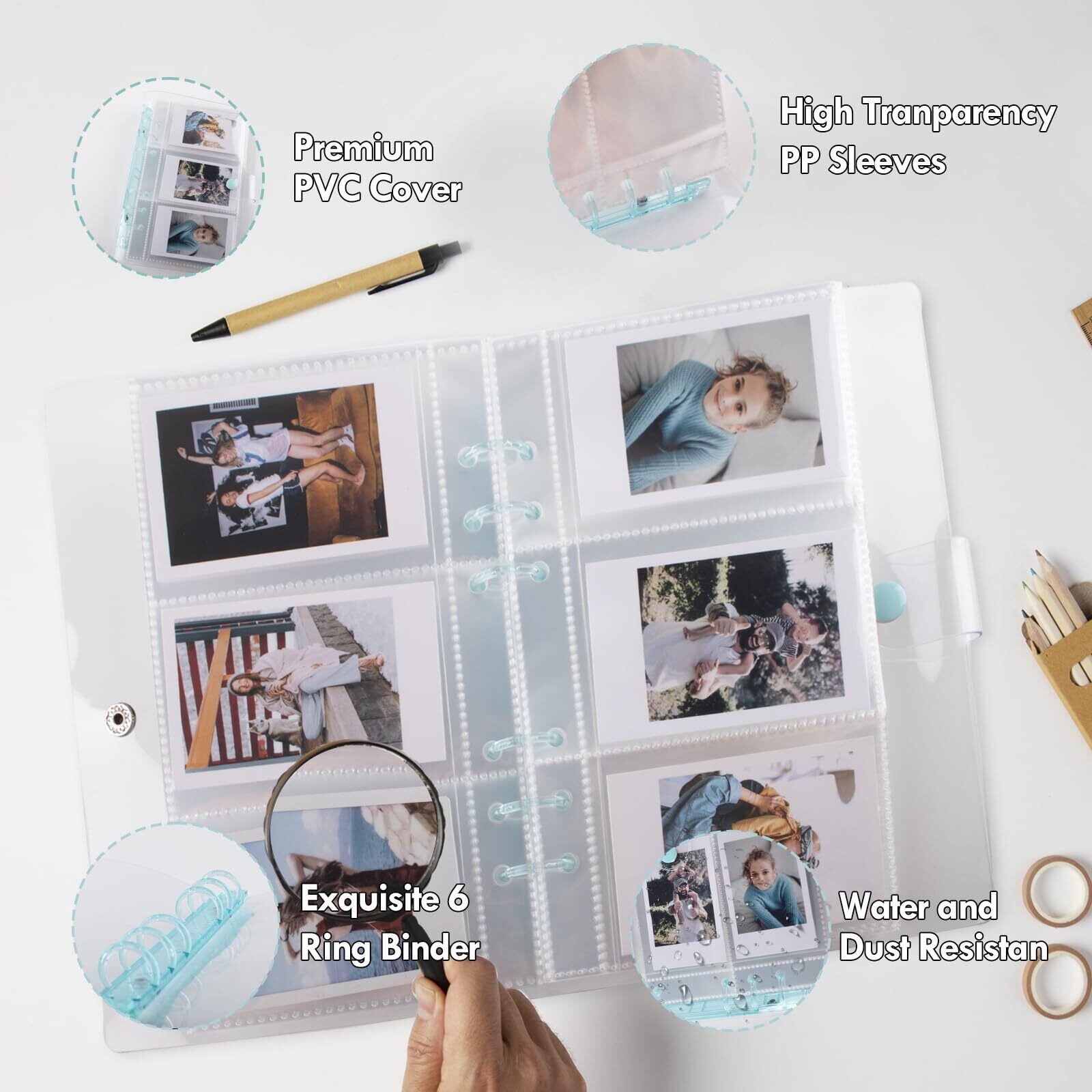 【2022最新】クリアフォトアルバム 120ポケット Kpop フォトカードバインダー Fujifilm Instax Mini Film 12/11/90/8/7/SE/99用 ポラロイドスナップ/コダックミニフォトブック用 ステッカー付き - クリアブルー