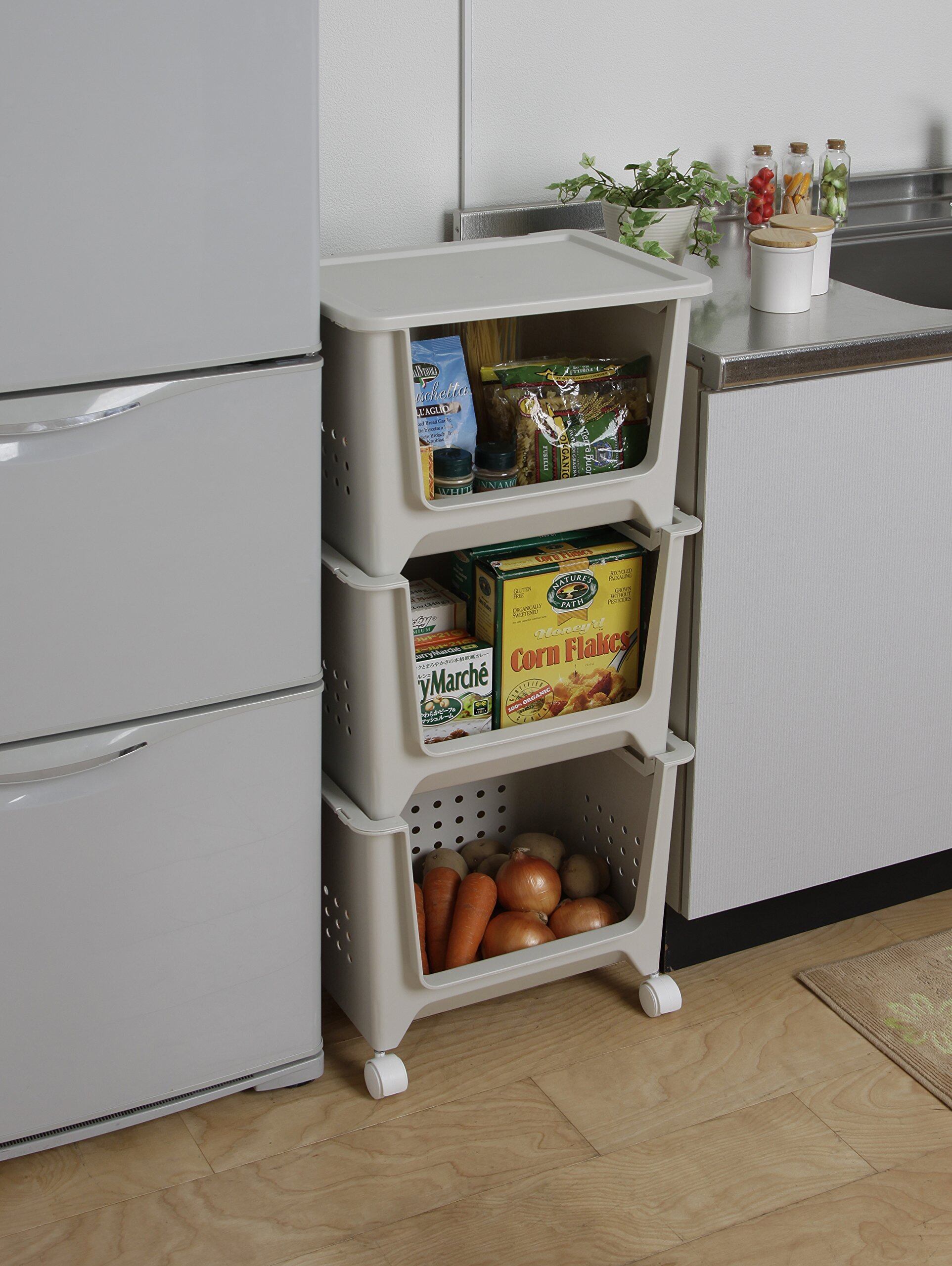 サイズ(約) 3段スタック時(キャスター取付):幅42.0×奥行31.0×高さ95.5cm バスケット内寸:幅35.0×奥行24.0×高さ29.5cm フタ取付時バスケットサイズ:幅42.0×奥行31.0×高さ31.5cm