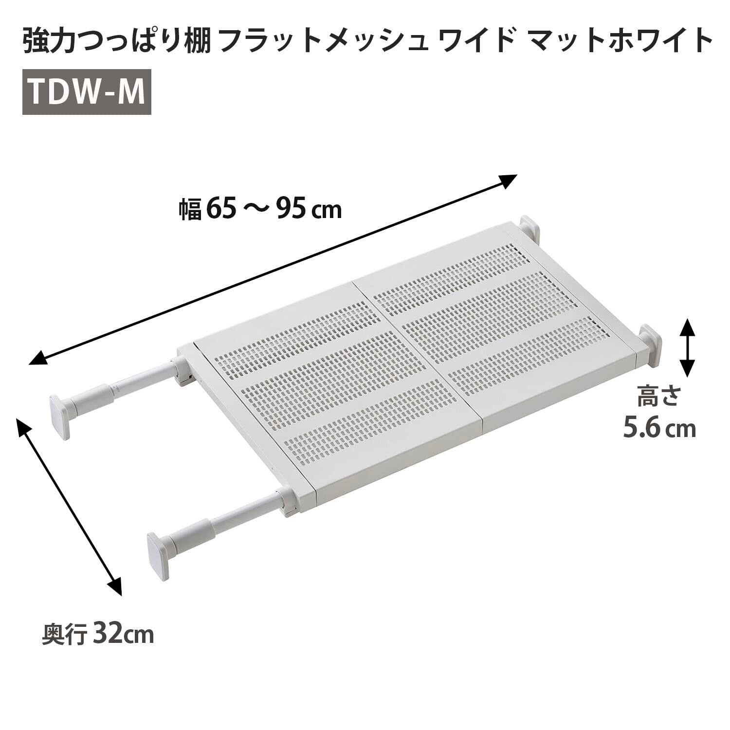 平安伸銅工業 HEIAN SHINDO つっぱり棚 強力ワイドタイプ フラットメッシュ マットホワイト 取付幅65~95cm 耐荷重50~30kg TDW-M