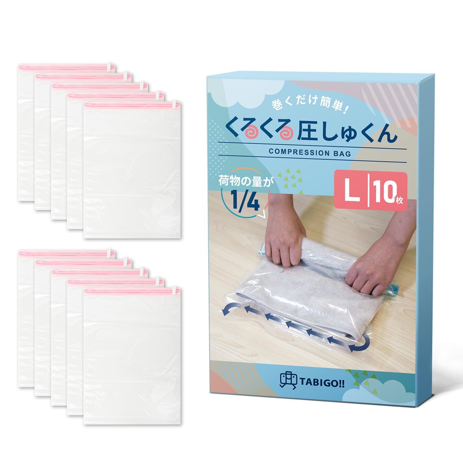 【数量限定】【じゃらん掲載】 TABIGO!! くるくる圧しゅくん 圧縮袋 旅行 衣類 洋服 真空 収納 手巻き トラベル 便利グッズ (L10枚)