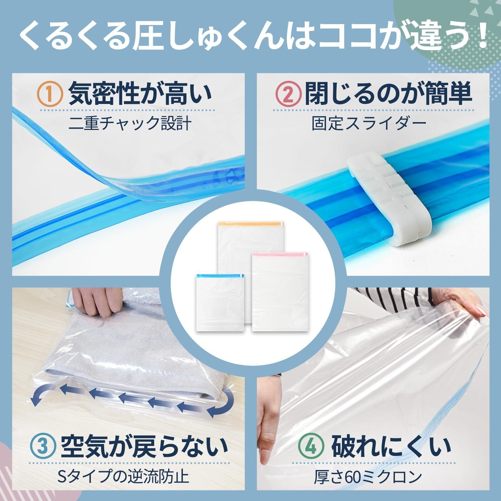 【旅行や衣替えに】手でクルクルと巻くだけで、ポンプや掃除機が不要 くるくる圧しゅくん! 一方向排気ポート設計(バルブなし)により、空気漏れを防ぎ、圧縮直後の空気漏れもなし。掃除機いらずで、旅行 先や出張先でも利用可能。荷造りがとても簡単にできます!