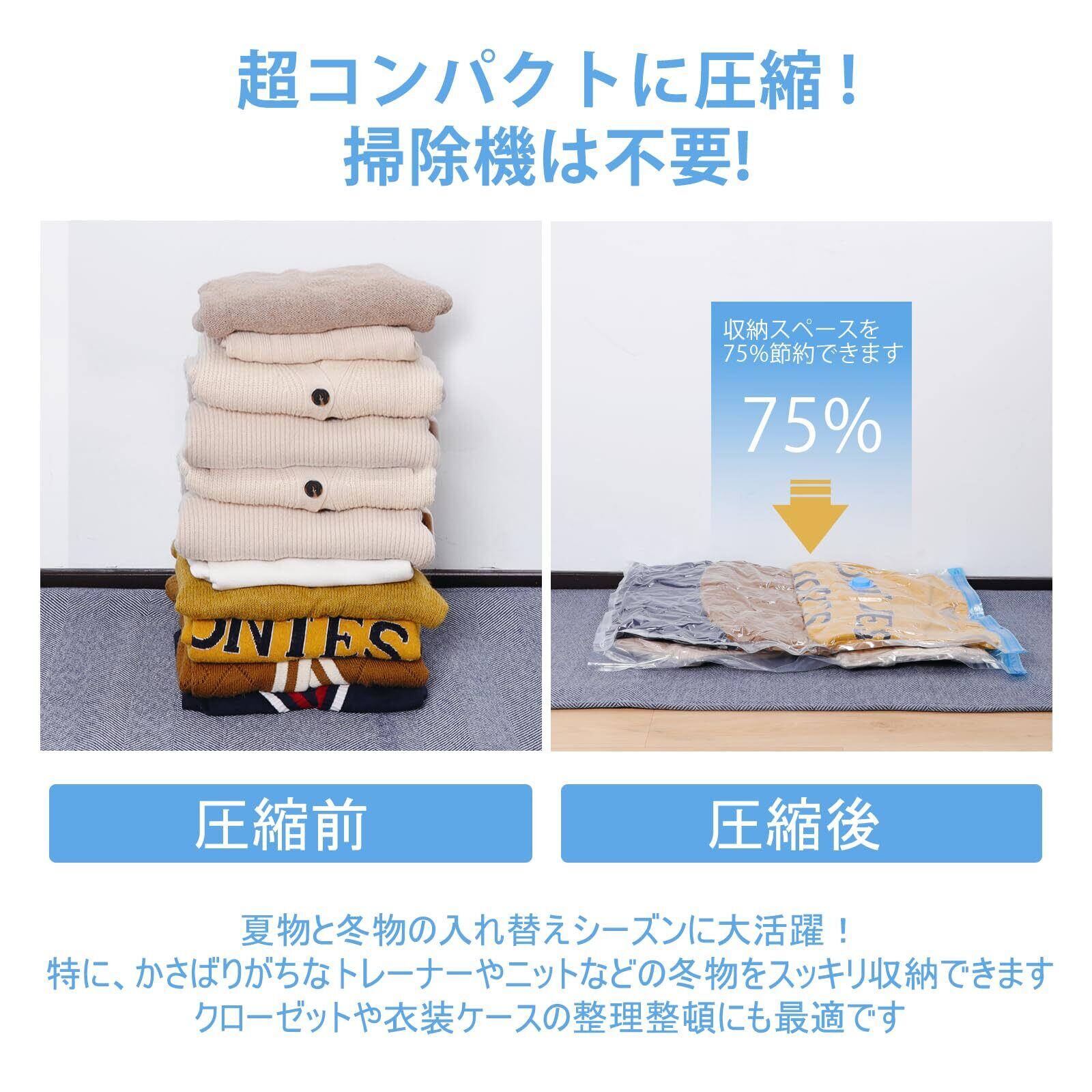 【サイズ】:35×50cm × 5枚、40×60cm × 5枚とコードレス電動ポンプが含まれています。小型から中型まで、様々なアイテムに対応可能な2種類のサイズ構成です。布団や衣類だけでなく、タオルや小物類の収納にも最適。旅行や引越しの荷造り、衣替えの収納整理にも大活躍します。コンパクトなデザインで持ち運びも簡単。収納効率を高め、どんなシーンでも便利にお使いいただけます。