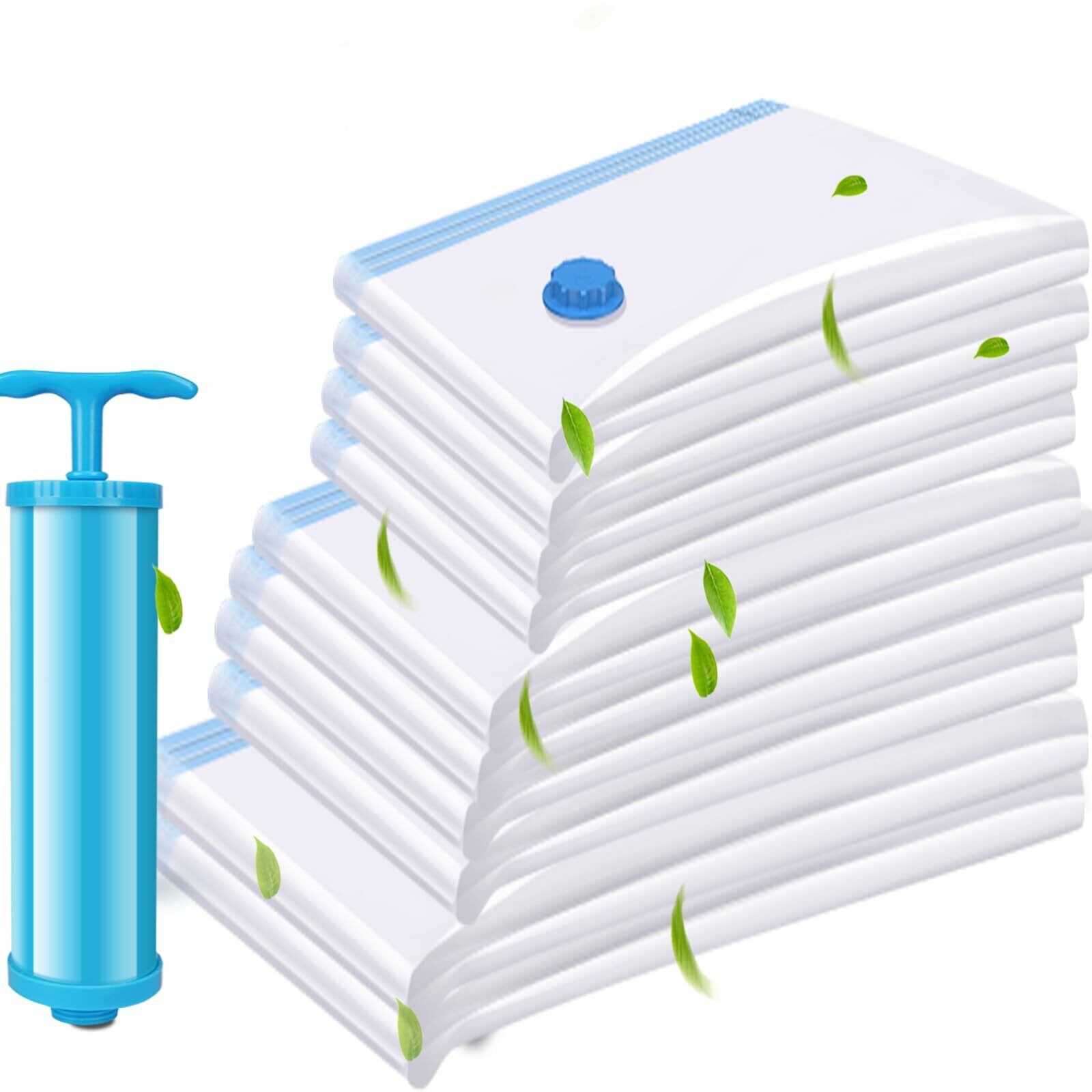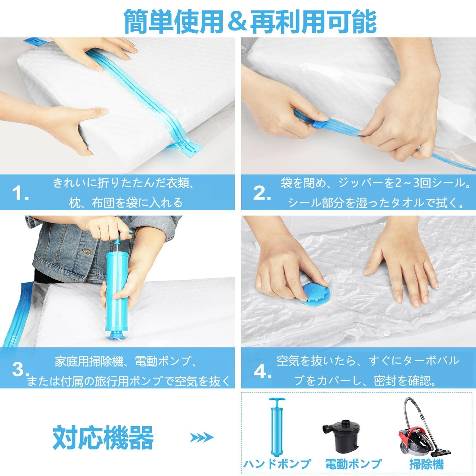 【2022最新】布団圧縮袋 PA+PE製 3サイズ10枚セット (100×80cm 2枚/80×60cm 4枚/60×40cm 4枚)衣類圧縮袋 毛布 ふとん 収納袋 衣類圧縮 高密封 防漏れ 厚手0.08mm 圧縮収納 防ダニ 防カビ 防湿 防臭 防塵 ハンドポンプ付き 真空圧縮 大容量 (10)