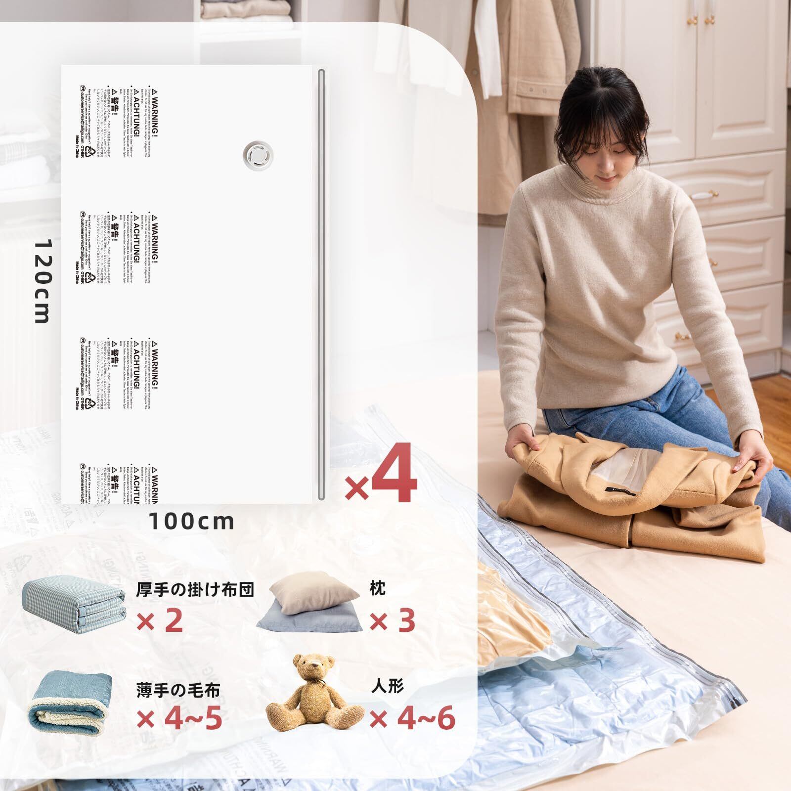 TAILI 布団圧縮袋 ふとん 衣類 120×100cm あっしゅくパック 真空収納パック 洋服 収納袋 省スペース 掃除機対応 防塵防湿 敷布団 特大サイズ 寝具 枕用 ぬいぐるみ 小物収納 家庭用 引越し 出張 旅行 衣替え (4枚)