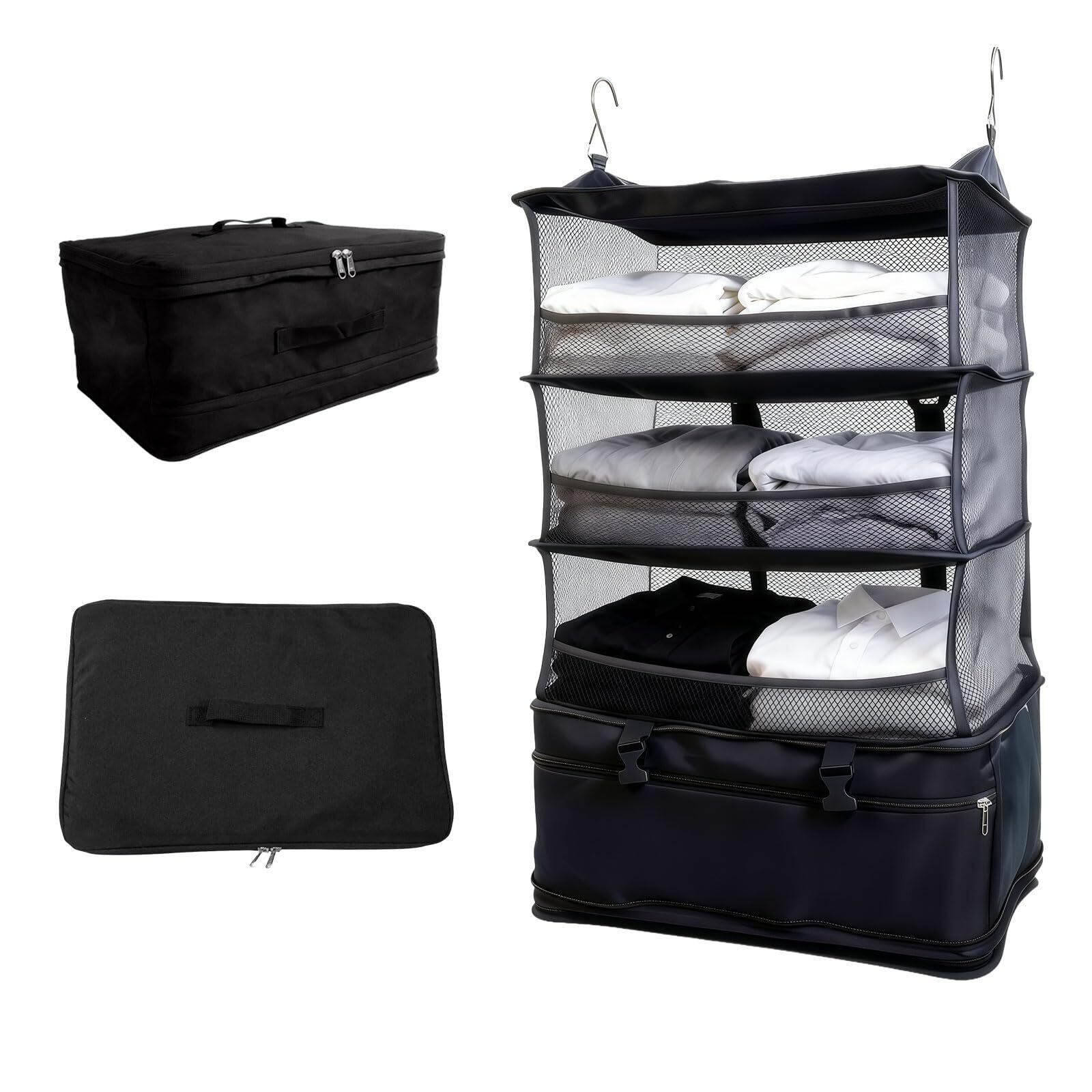 トラベルポーチ 吊り下げ 海外旅行 圧縮 便利グッズ 服 収納 大容量 吊り下げ収納 (ブラック)