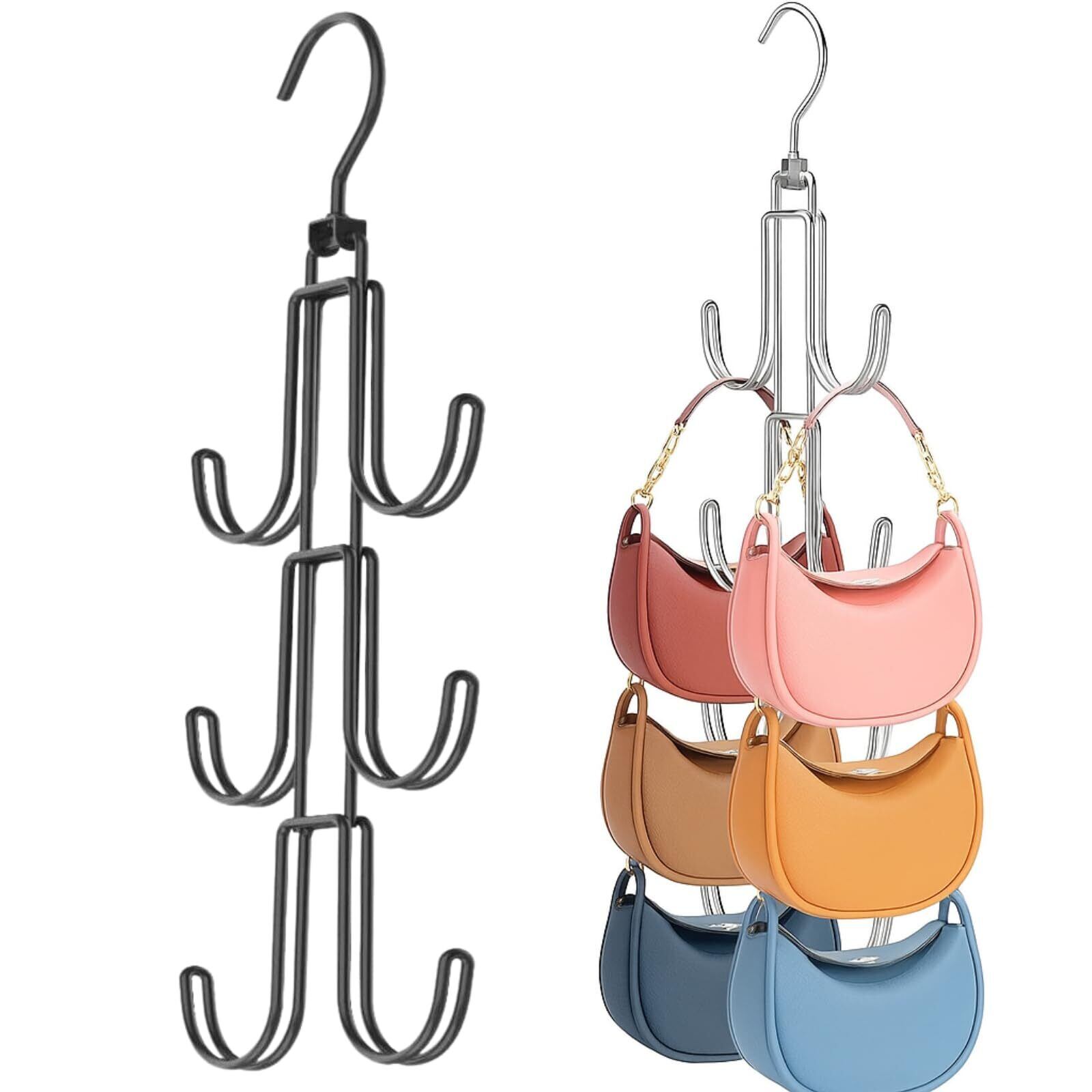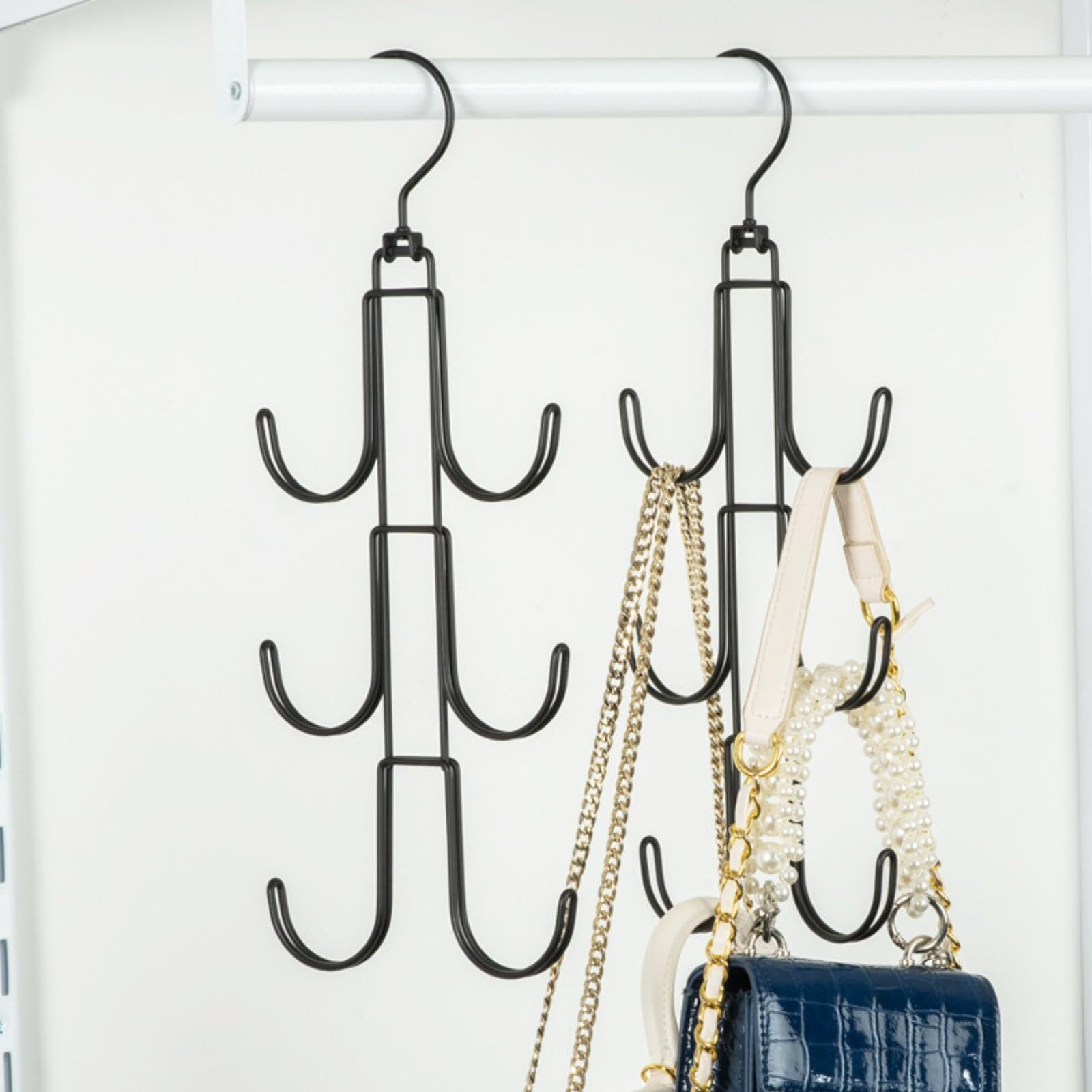 クローゼット収納 フックハンガー 360°可動フック 丈夫なスチール製 両面6収納 バッグ整理 吊り下げラック 主婦必見 コンパクト&大容量 (ブラック)