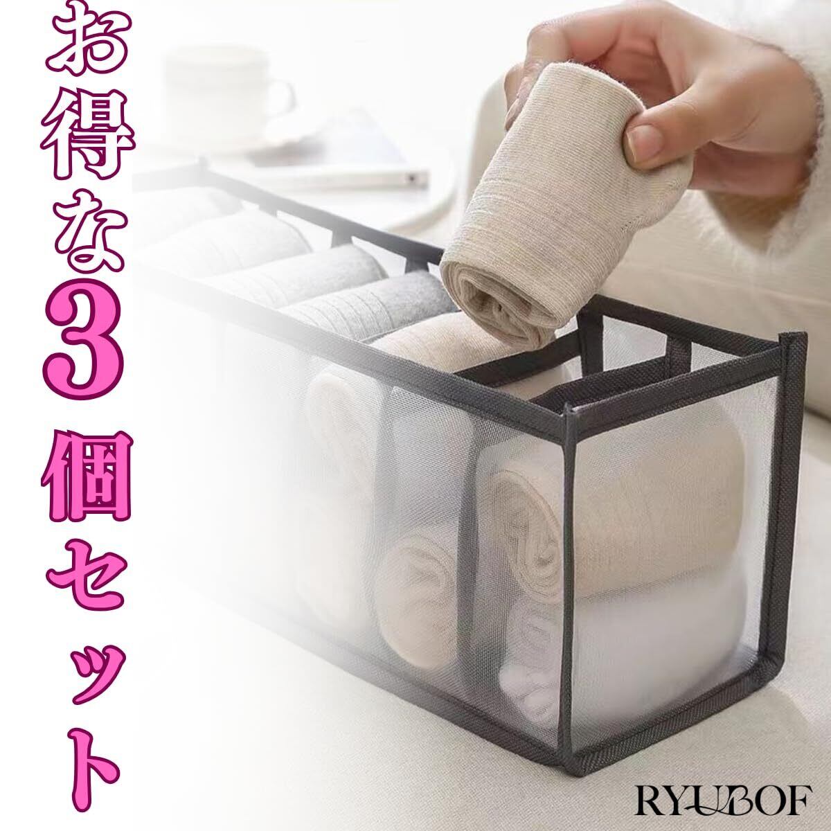 【衣類収納ボックス3個セット】この収納ボックスは靴下や下着ネクタイなどの小物を整理するのに最適な衣類収納の仕切り付き3個セットで引き出しの中をすっきり清潔に保ちます。