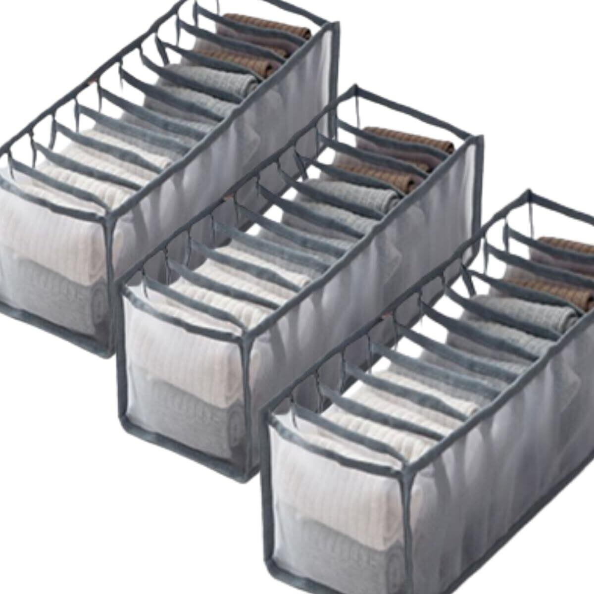 【特価セール】下着 収納 仕切り 3個セット 衣類収納ボックス 11仕切り 靴下 下着 小物 収納ケース 折りたたみ メッシュ素材 通気性 (グレー)