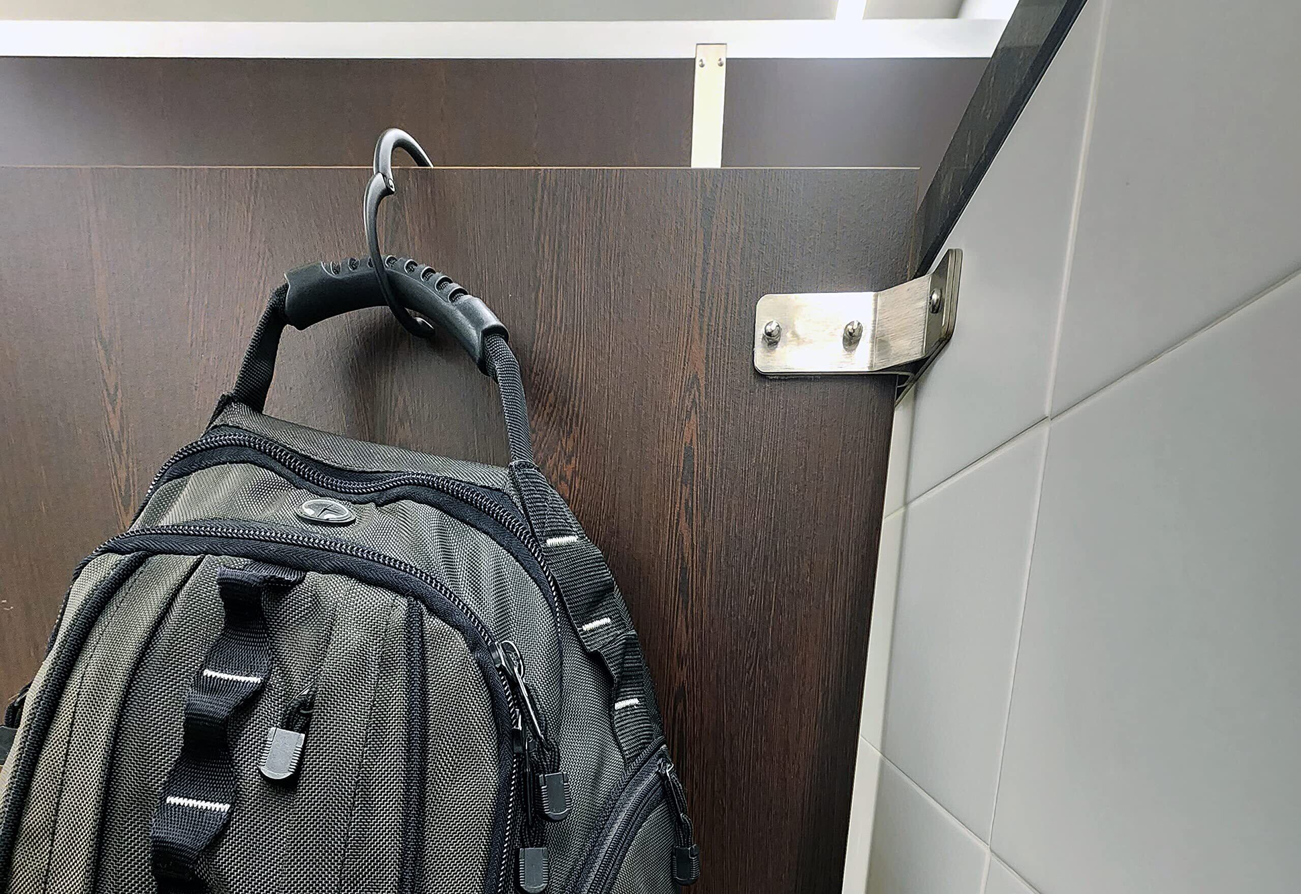 モダンなスプリングクロージングフックは、わずか1/2インチのスペースで、どんな面にもバッグを掛けることができます。