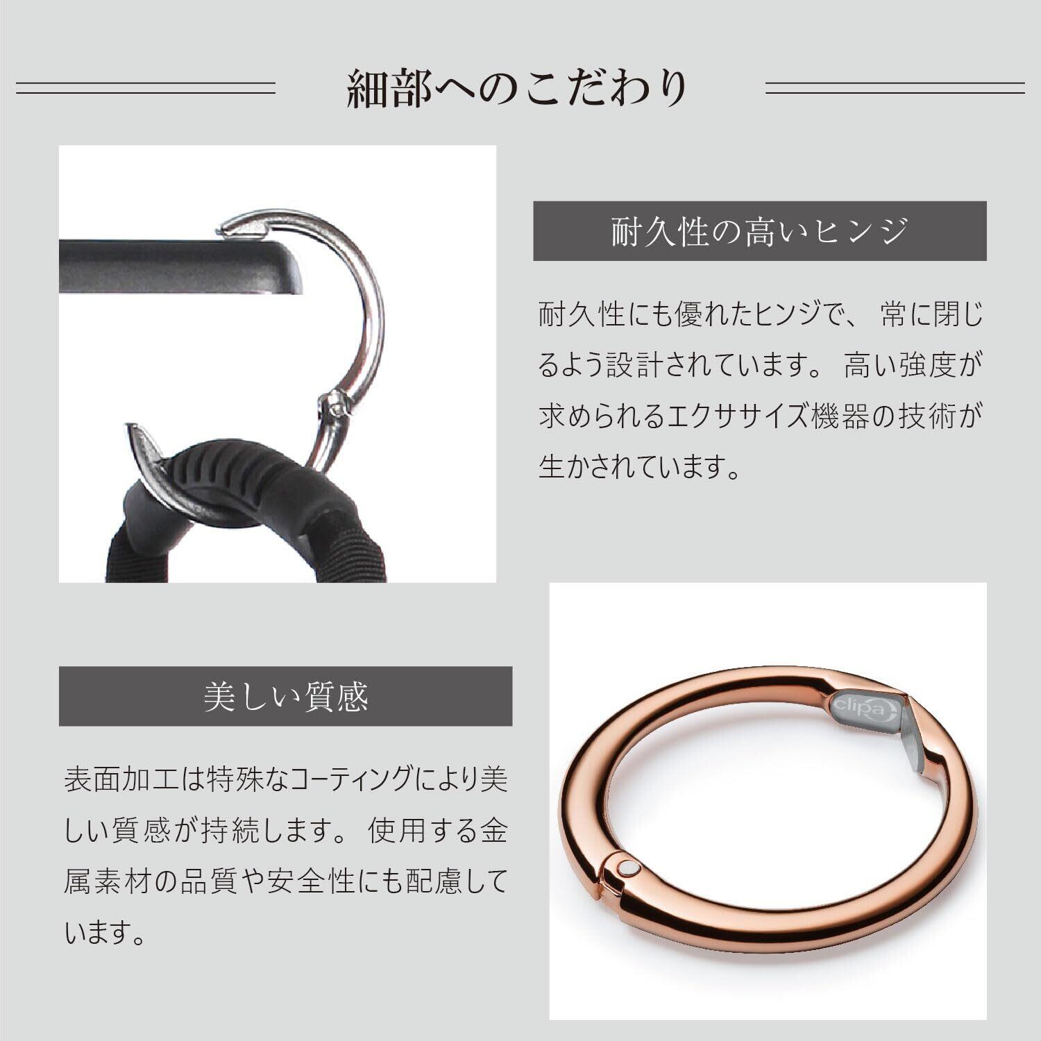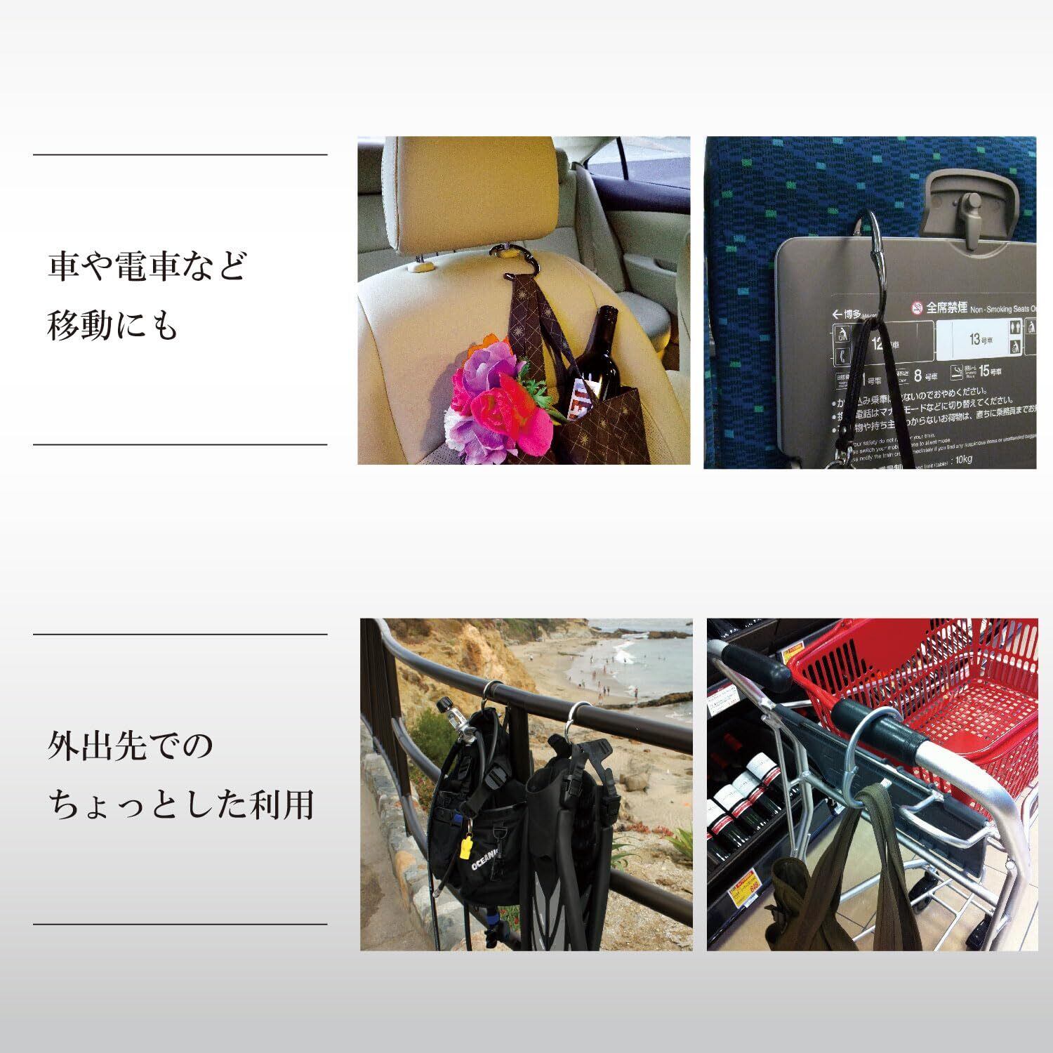 耐荷重15kgで抜群の安定感。究極のバッグハンガー。【特長】・耐荷重15kgで抜群の安定感をほこる、究極のバッグハンガー。・性能とデザインを研ぎ澄ましたシンプルなデザインです。・バッグの持ち手に付けて、掛けたい場所が決まったら、開いて、引っ掛けるだけ。・平らな平面だけではなく、車のヘッドレスト、テーブルなど引っ掛ける場所があればどこでもご利用いただけます。・外出先で、お部屋の中で、移動の途中で、さまざまな場面でお使いいただけます。・約6cmまでの厚みのテーブルに引っ掛けることができます。・テーブルなどの表面に接触する樹脂パッドは、接触する場所を傷つけず、さらに滑り止めの機能も兼ね備えています。・使い終わってバッグを持ち上げると、そのままヒンジが閉じて、バッグの持ち手に戻ります。・表面加工にもこだわり、摩擦による磨耗や剥がれなどに対する耐久性が高く、傷が付きにくい仕上げです。【使用方法】(1)掛ける場所が決まったらバッグの持ち手に付けてください。(2)バッグを持ち上げるだけでヒンジが開きますので、お好きな場所に引っ掛けてください。