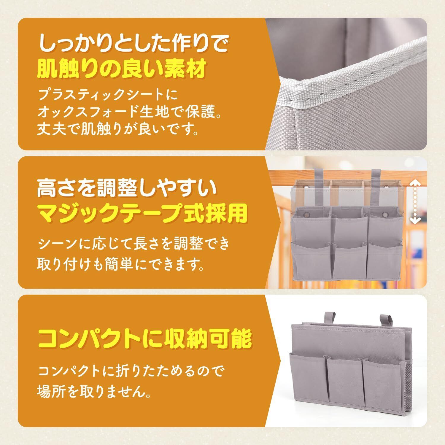 新型 浅型 ベッドサイド 収納 ベッドサイドポケット かご【高齢者施設監修】仕切り マジックテープ 車 チェア ベビーカー VENGOO グレー