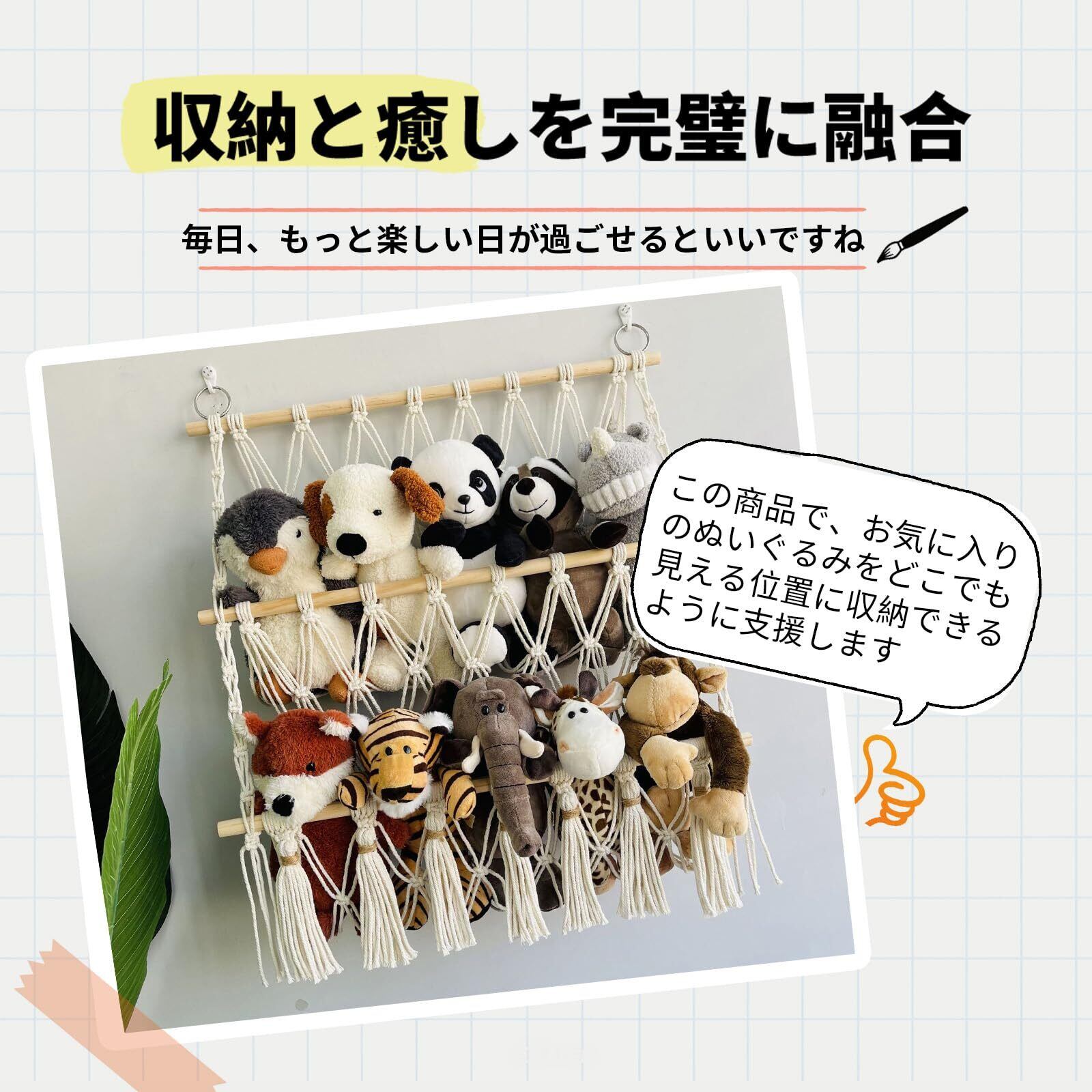 【ぬいぐるみ収納 大容量で空間活用】ぬいぐるみやおもちゃを一括整理,壁 収納 のウォールポケット 壁掛け でデッドスペースを活かし省スペース。子供部屋やリビングに自然溶け込み,実用とおしゃれを兼ねたぬいぐるみ収納に最適