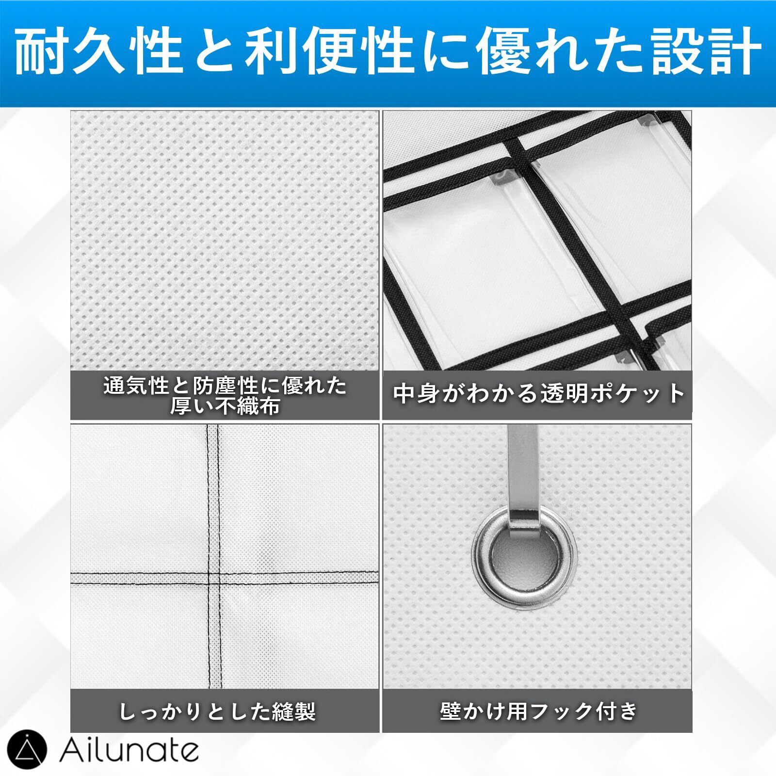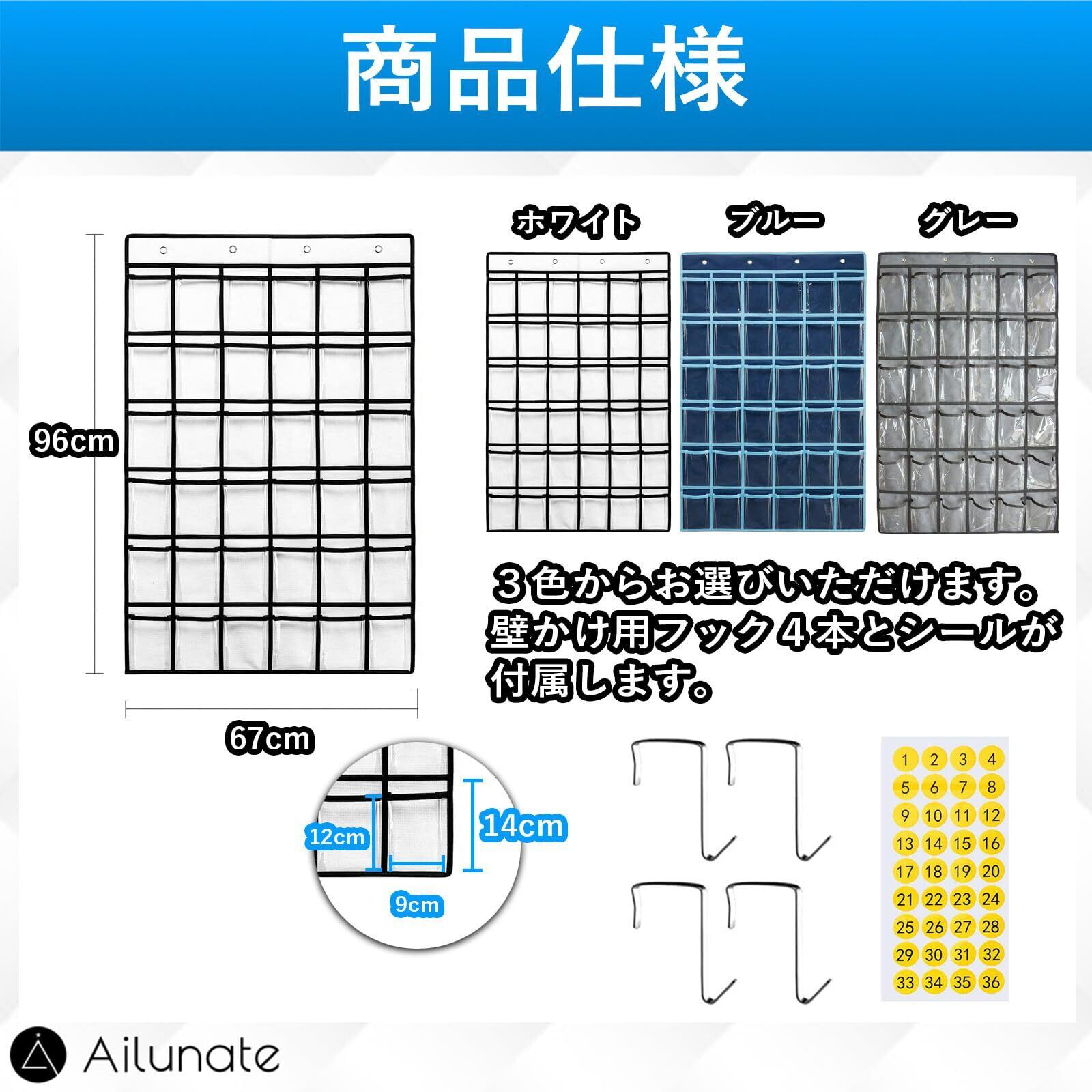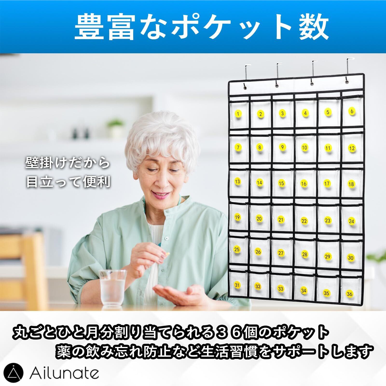 【人気商品】Ailunate ウォールポケット カレンダーポケット お薬カレンダー クリア 壁掛け 収納 透明 吊り下げ クローゼット 小物 フック付き 36ポケット (ホワイト)