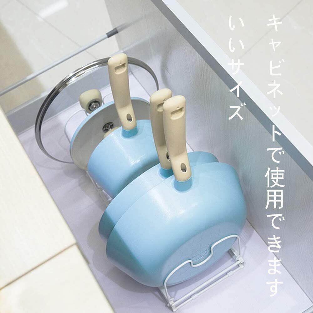 【フライパン収納ラックで横置き整理】フライパンや鍋を立てて収納でき、省スペースに最適。コンロ下・キッチン下収納に対応し、すっきり整頓。