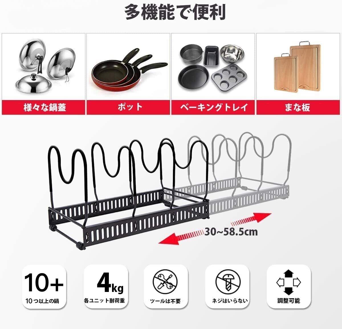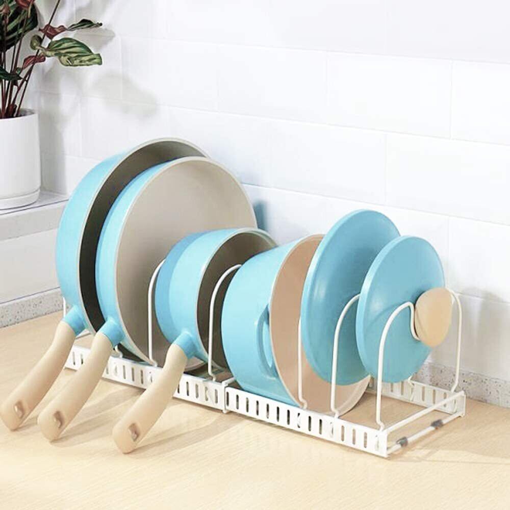 【2022最新】Liebbon【伸縮式】フライパン収納ラック 10仕切り付き|シンク下・コンロ下・引き出し対応|鍋スタンド 鍋蓋・まな板・フライパン立てて収納|キッチン下収納ラック (伸縮式 白い)