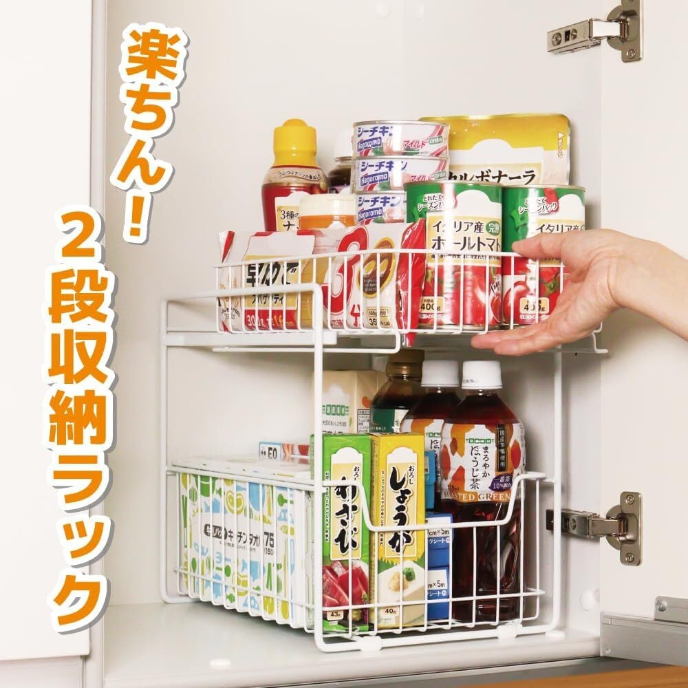下段の棚は高さ21cmまで収納可能で、シンク下・洗面台の下・その他いろいろな場所で活躍します!