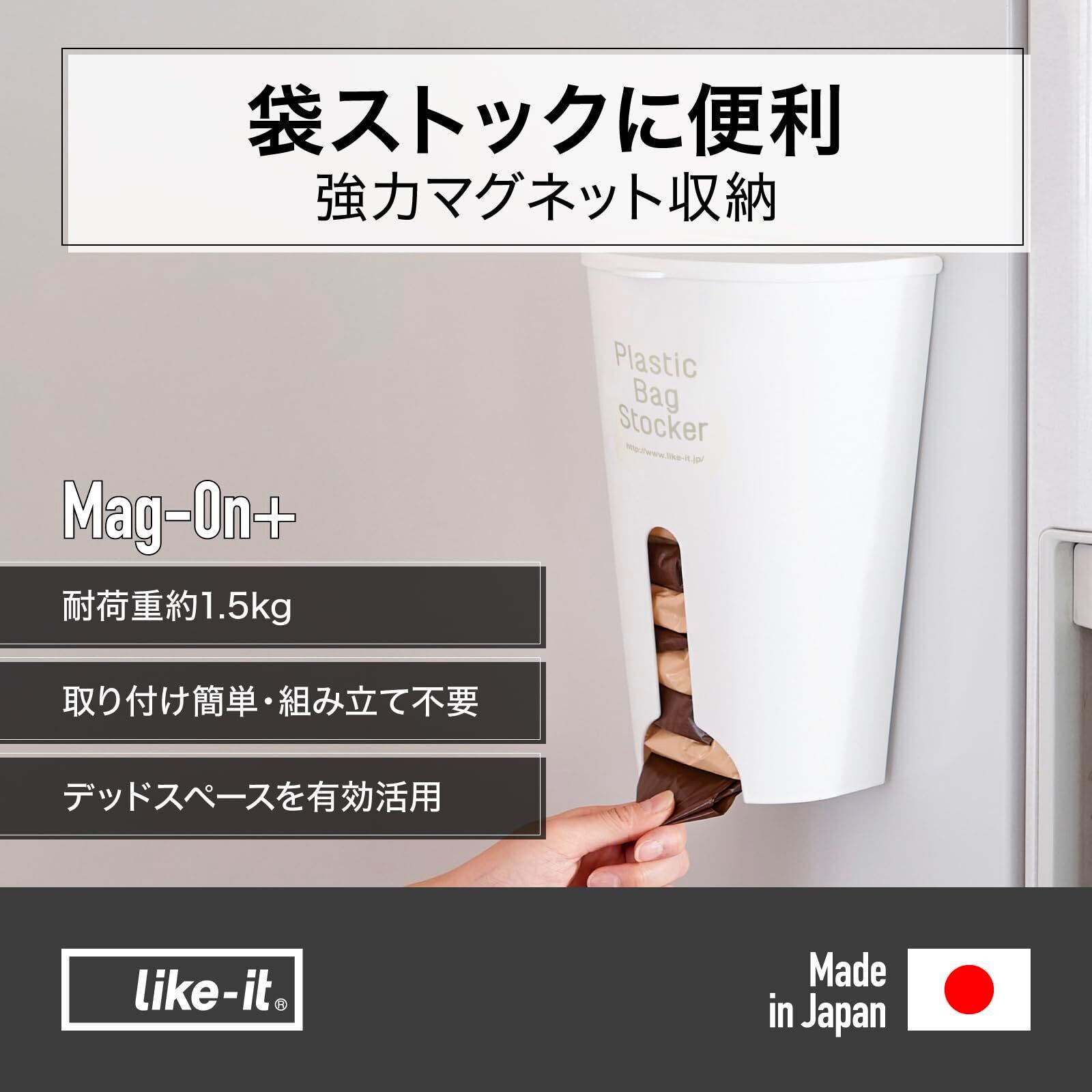 ライクイット (like-it) キッチン ランドリー マグネット収納 強力マグネット ポリ袋ストッカー (吸盤付き) ニューホワイト 冷蔵庫 洗濯機 Mag-On+ 8072