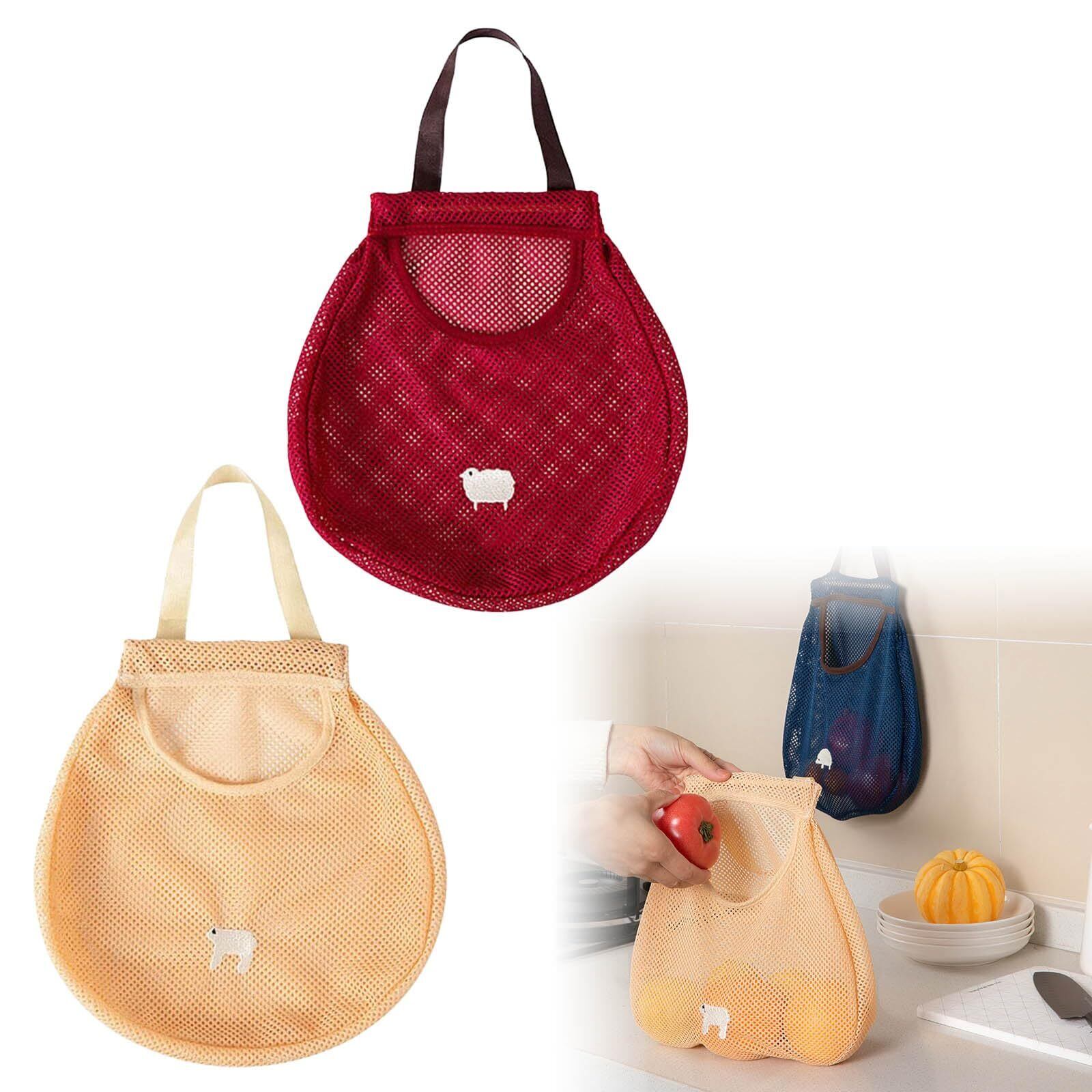 野菜 吊り下げ 玉ねぎ メッシュ 袋 2個入り レジ袋ストッカー 30*28cm 壁掛け 果物収納袋 壁掛けレジ袋 通気性 玉ねぎ 保存ネット 再利用可能 レジ袋収納 野菜 保存 吊り下げ 袋 ゴミ袋収納 ビニール袋 収納 适キッチン バスルーム その他吊り下げ可能な場所に使用 (2個入り, レッド+イエロー) [並行輸入品]