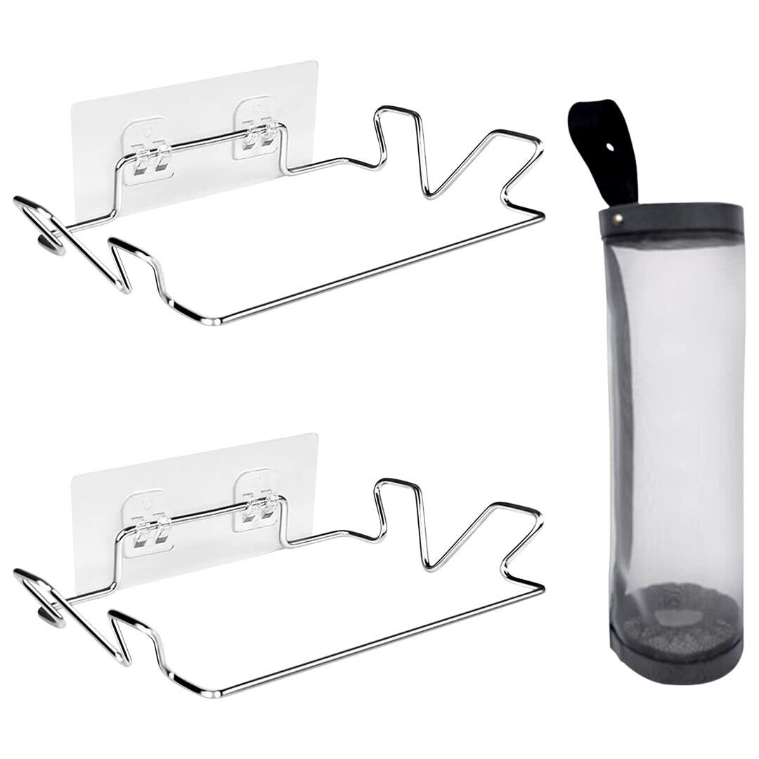 Zayookey レジ袋ハンガー ゴミ袋ホルダー ステンレス鋼 強力粘着 貼り付け 壁掛け 生ごみ入れ スペース節約 ホーム キッチン トイレ 浴室 キャビネット ドア ストレージ 多機能 便利 レジ袋ストッカー付き (レジ袋ホルダー2個+レジ袋ストッカー1個)